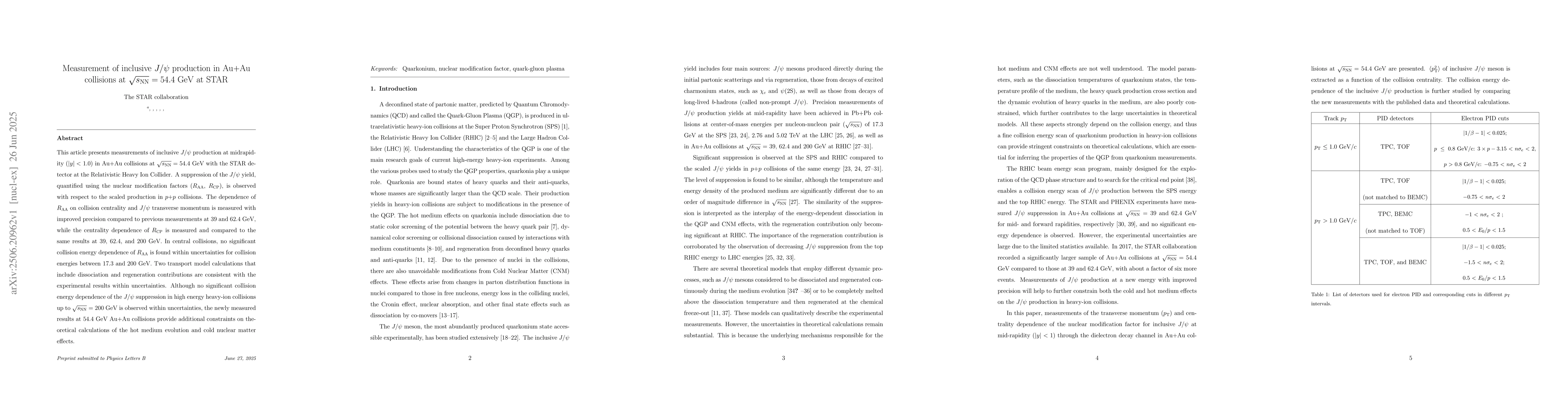 This work is the first to report detailed J/ψ production measurements at 54.4 GeV, bridging the gap between lower and higher RHIC energies and providing new constraints on theoretical models of quarkonium suppression.