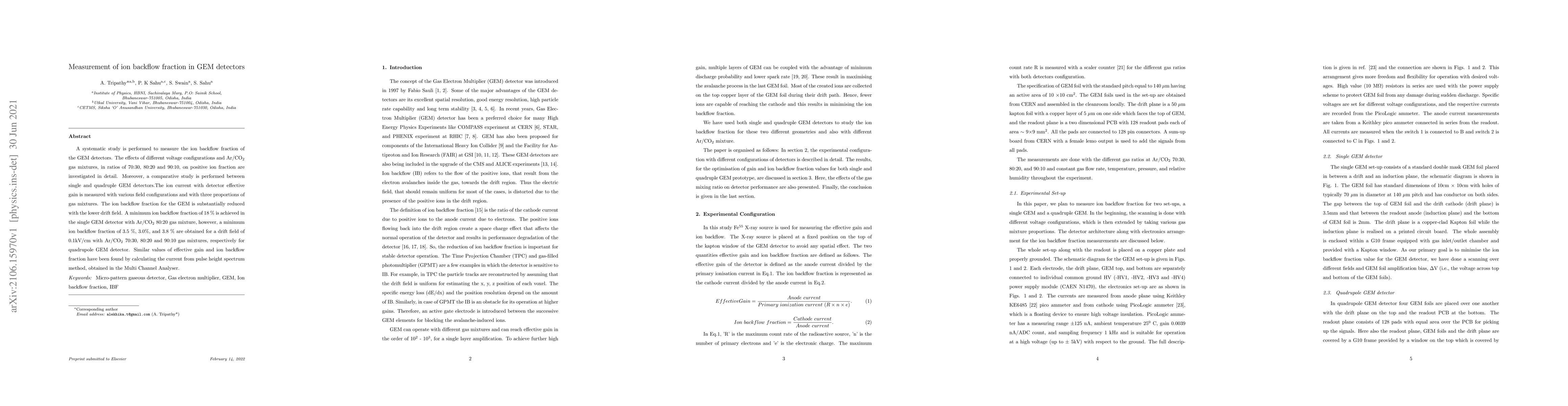 This study measures the ion backflow fraction in GEM detectors under various voltage configurations and Ar/CO₂ gas mixtures. Quadrupole GEM detectors show significantly lower backflow fractions compared to single GEM detectors, achieving values as low as 3.5% for specific gas mixtures and field strengths.