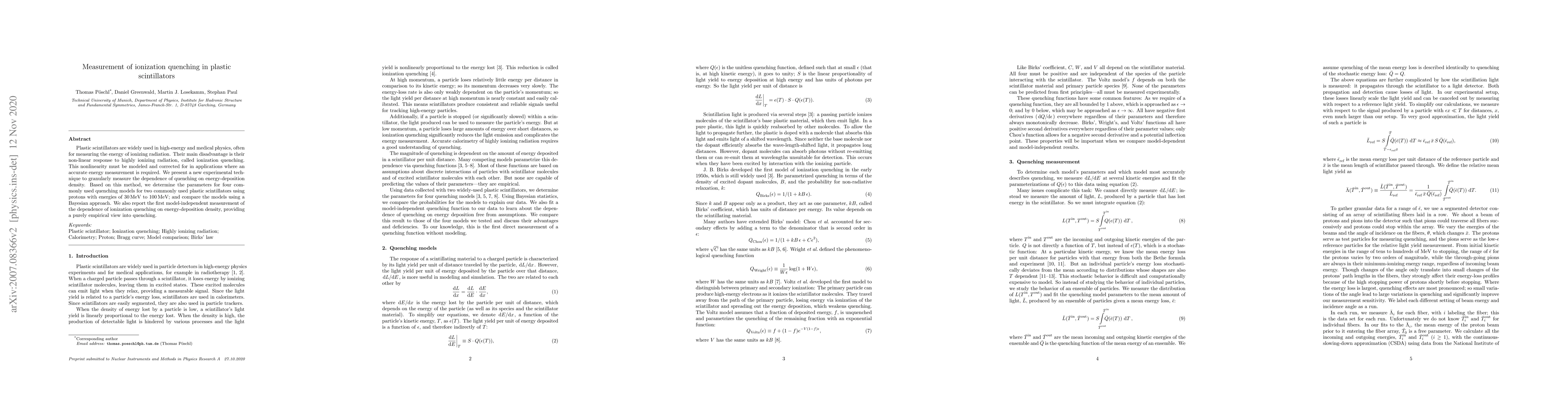 Plastic scintillators are widely used in high-energy and medical physics, often for measuring the energy of ionizing radiation. Their main disadvantage is their non-linear response to highly ionizing radiation, called ionization quenching. This nonlinearity must be modeled and corrected for in applications where an accurate energy measurement is required. We present a new experimental technique to granularly measure the dependence of quenching on energy-deposition density. Based on this method, we determine the parameters for four commonly used quenching models for two commonly used plastic scintillators using protons with energies of 30 MeV to 100 MeV; and compare the models using a Bayesian approach. We also report the first model-independent measurement of the dependence of ionization quenching on energy-deposition density, providing a purely empirical view into quenching.