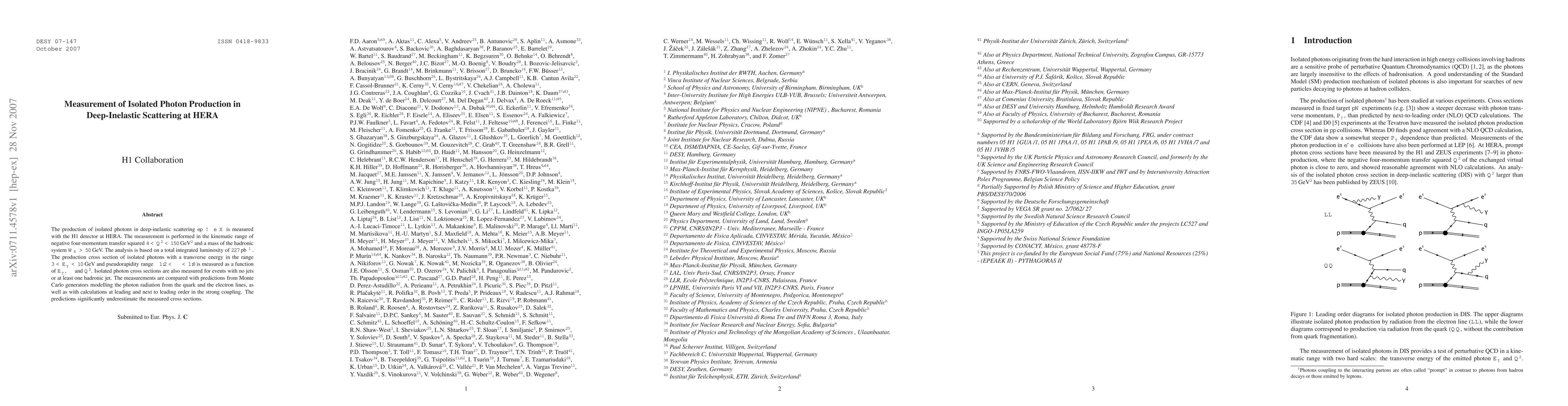 The H1 detector at HERA measured isolated photon production in deep-inelastic scattering within specific kinematic ranges, revealing discrepancies between measured cross sections and theoretical predictions, which significantly underestimate the observed data.