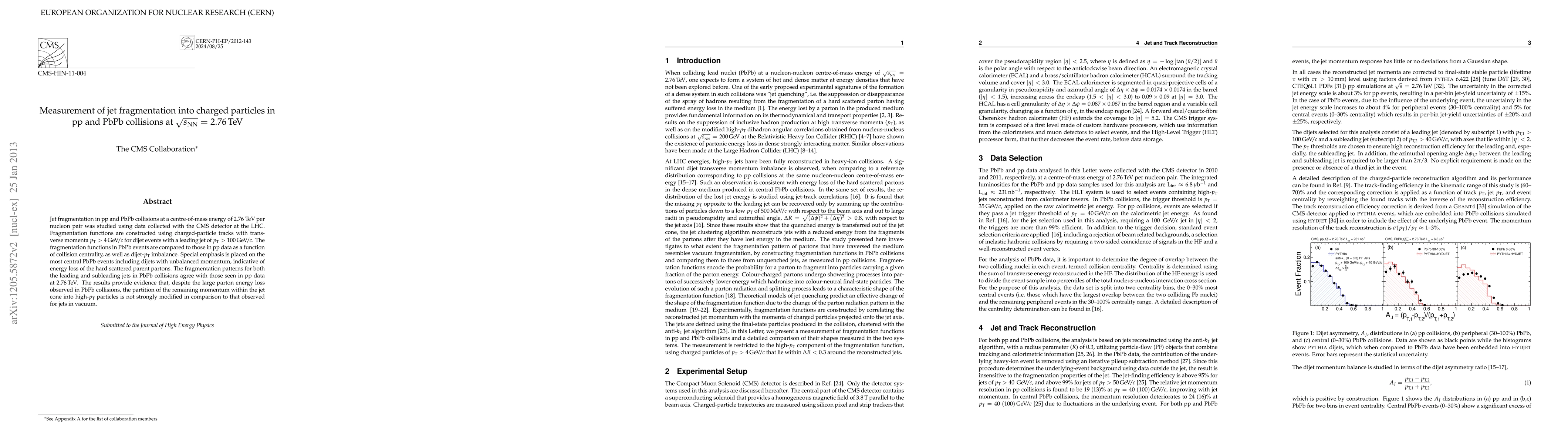 This study investigates jet fragmentation in pp and PbPb collisions at 2.76 TeV using CMS detector data, focusing on charged particles' fragmentation functions. Despite significant parton energy loss in PbPb collisions, the fragmentation patterns in both leading and subleading jets remain consistent with those in pp collisions, indicating minimal modification in momentum distribution.