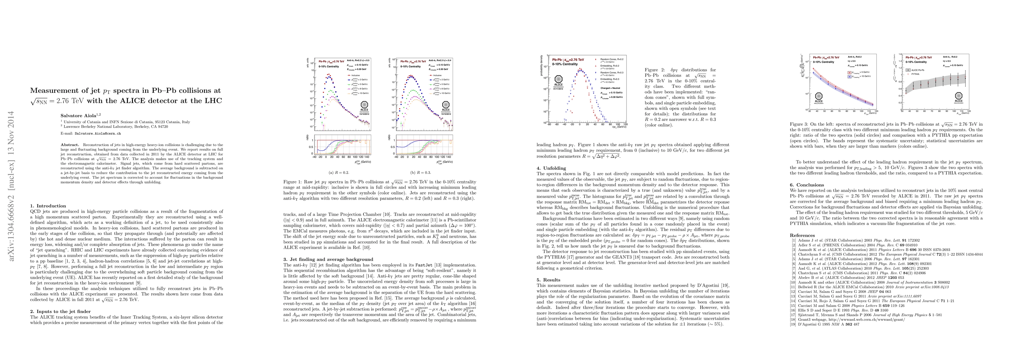 This paper reports on the full reconstruction of jet $p_{\mathrm{T}}$ spectra in Pb-Pb collisions at $\sqrt{s_{\mathrm{NN}}}=2.76~\mathrm{TeV}$ using the ALICE detector at the LHC, employing the anti-$k_{\mathrm{T}}$ algorithm and correcting for background and detector effects. The analysis focuses on distinguishing signal jets from the fluctuating background in high-energy heavy-ion collisions.