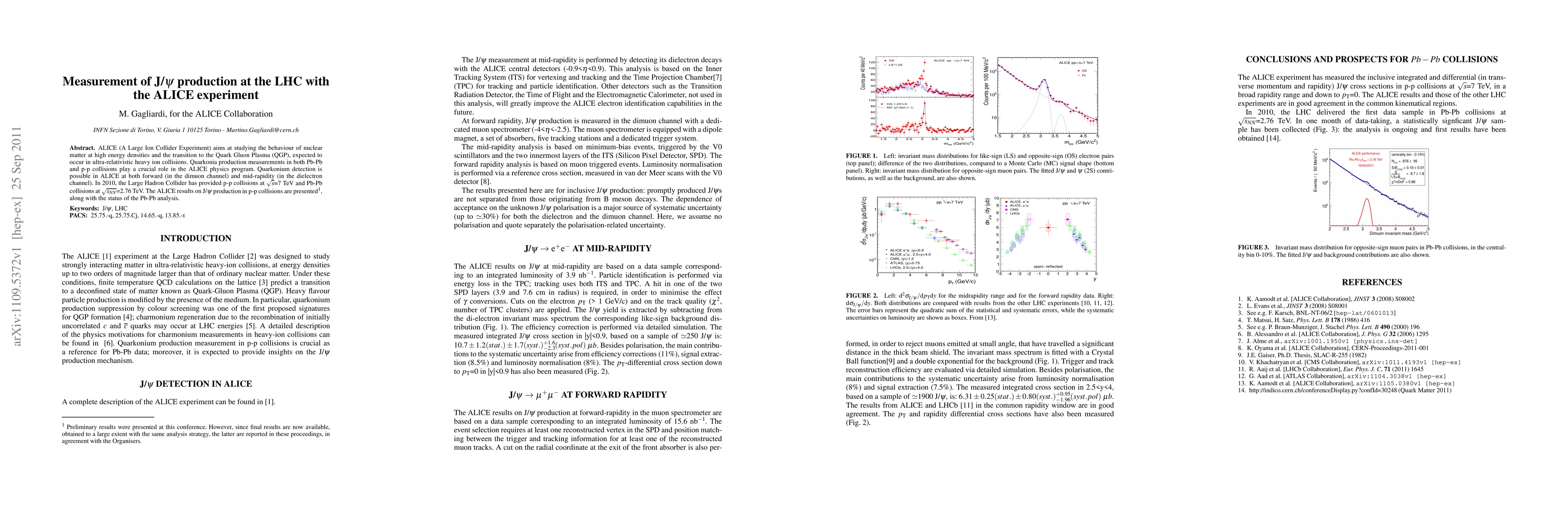 The ALICE experiment measures J/psi production at the LHC to study nuclear matter behavior and the transition to Quark Gluon Plasma. Results on J/psi in pp collisions at sqrt(s)=7 TeV are presented, with ongoing analysis for Pb-Pb collisions at sqrt(sNN)=2.76 TeV.