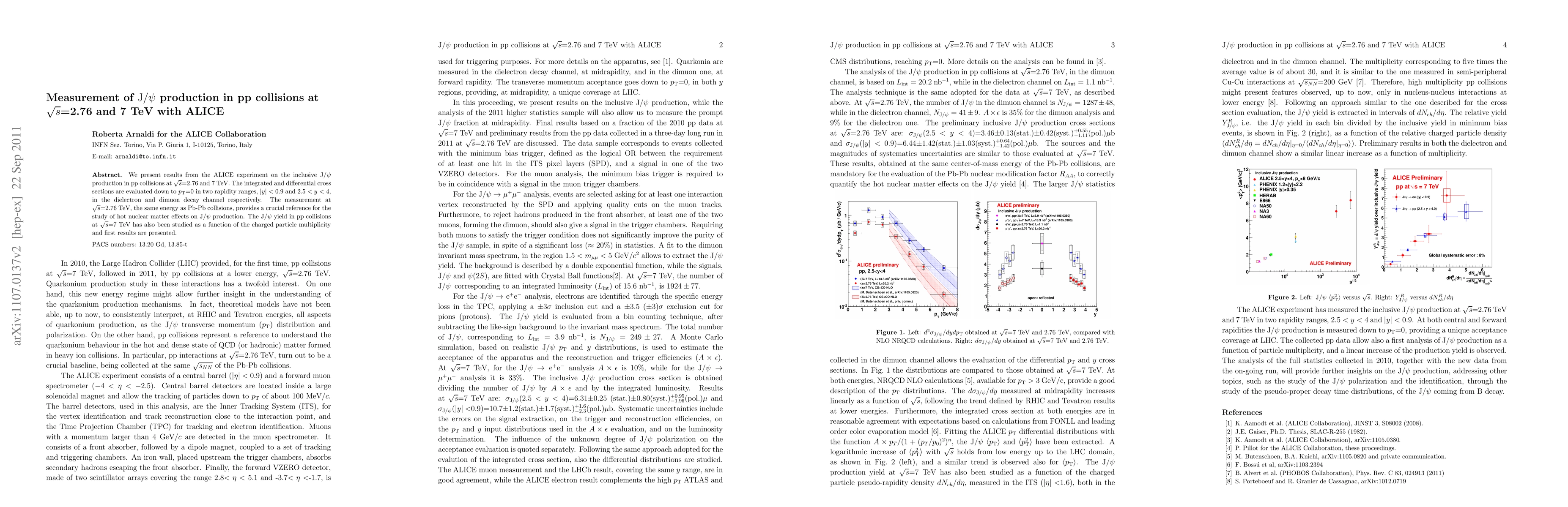 production in pp collisions at sqrt(s)=2.76 and 7 TeV. The integrated and