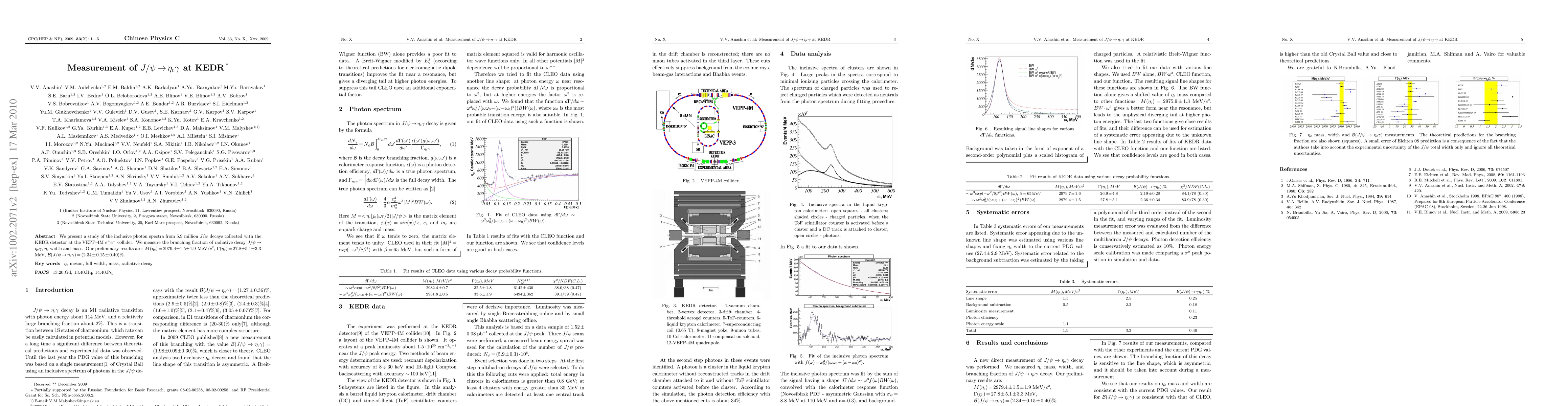 We present a study of the inclusive photon spectra from 5.9 million J/psi decays collected with the KEDR detector at the VEPP-4M e+e- collider. We measure the branching fraction of radiative decay J/psi to eta_c gamma, eta_c width and mass. Our preliminary results are: M(eta_c) = 2979.4+-1.5+-1.9 MeV, G(eta_c) = 27.8+-5.1+-3.3 MeV, B(J/psi to eta_c gamma) = (2.34+-0.15+-0.40)%.