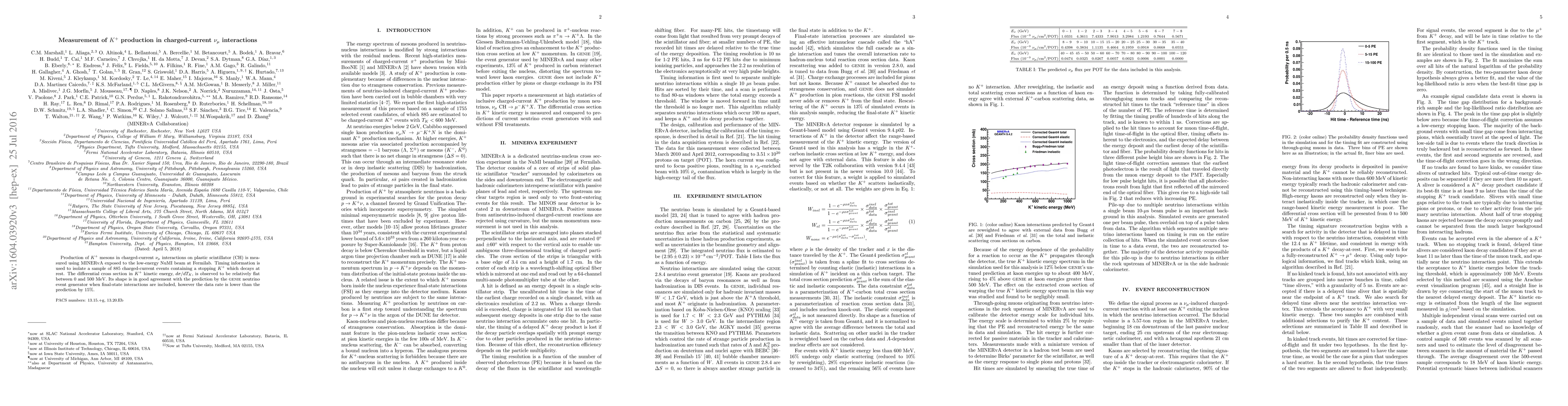 This study measures $K^{+}$ production in charged-current $\nu_{\mu}$ interactions on plastic scintillator using the MINERvA detector at Fermilab. The differential cross section in $K^{+}$ kinetic energy is relatively flat, matching predictions from the \textsc{genie} generator, though the observed data rate is 15% lower than expected.