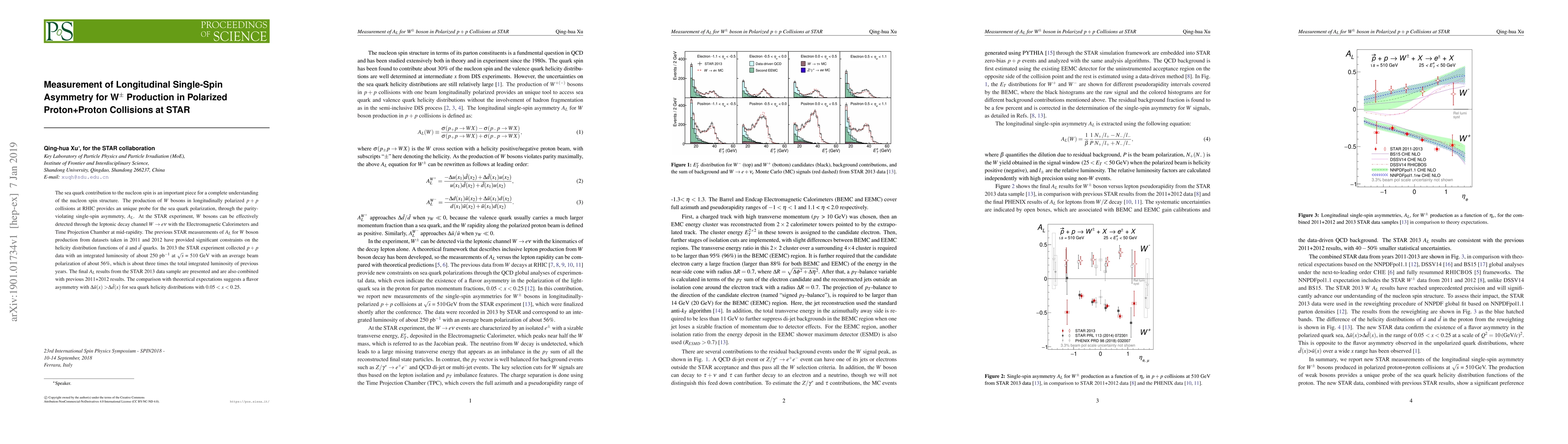 Researchers at STAR experiment measured longitudinal single-spin asymmetry for W$^ heta$ production in polarized proton+proton collisions, providing new constraints on sea quark polarization and flavor asymmetry.