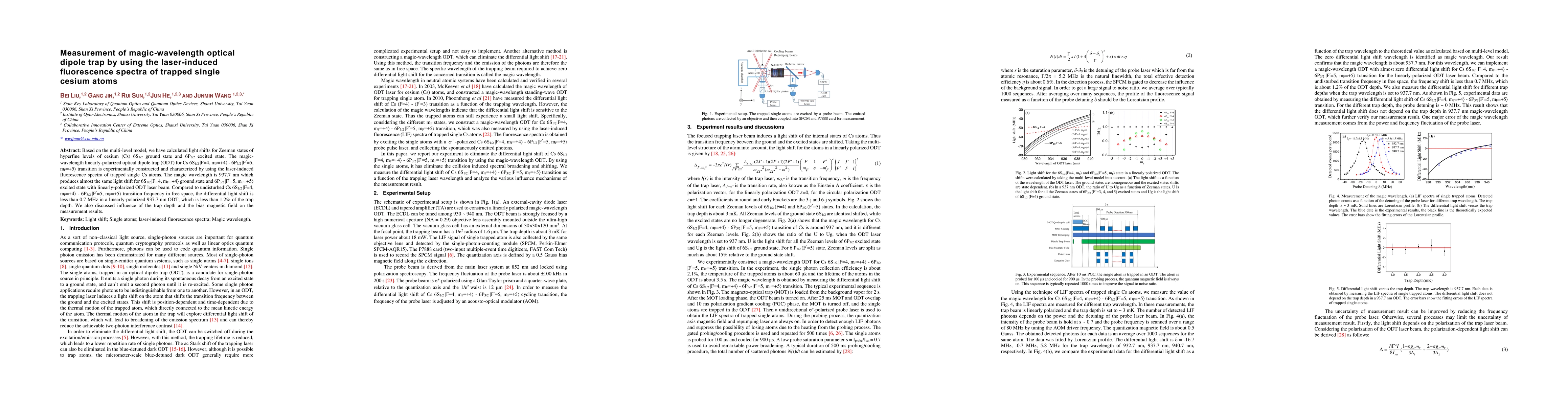 This paper measures the magic-wavelength optical dipole trap (ODT) for cesium atoms at 937.7 nm using laser-induced fluorescence spectra, achieving minimal differential light shifts of less than 0.7 MHz, which is less than 1.2% of the trap depth. The study also examines the effects of trap depth and bias magnetic fields on the results.