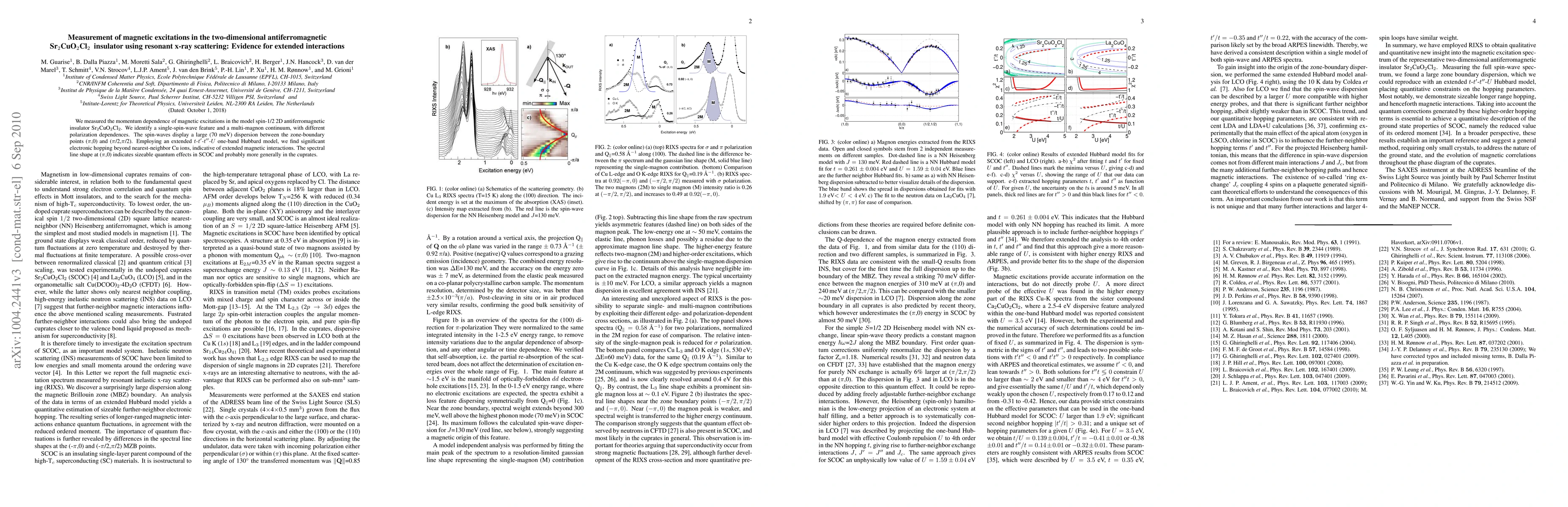 Using high-resolution resonant inelastic x-ray scattering (RIXS), we performed a momentum-resolved study of magnetic excitations in the model spin-1/2 2D antiferromagnetic insulator Sr_2CuCl_2O_2. We identify both a single-spin-wave feature and a multi-magnon continuum, and show that the X-ray polarization can be used to distinguish these two contributions in the cross-section. The spin-waves display a large (70 meV) dispersion between the zone-boundary points ($\pi$,0) and ($\pi$/2,$\pi$/2). Employing an extended $t$-$t'$-$t"$-$U$ one-band Hubbard model, we find significant electronic hopping beyond nearest-neighbor Cu ions. We conclude that sizeable extended magnetic interactions are present in \scoc{} and probably important in all undoped cuprates.