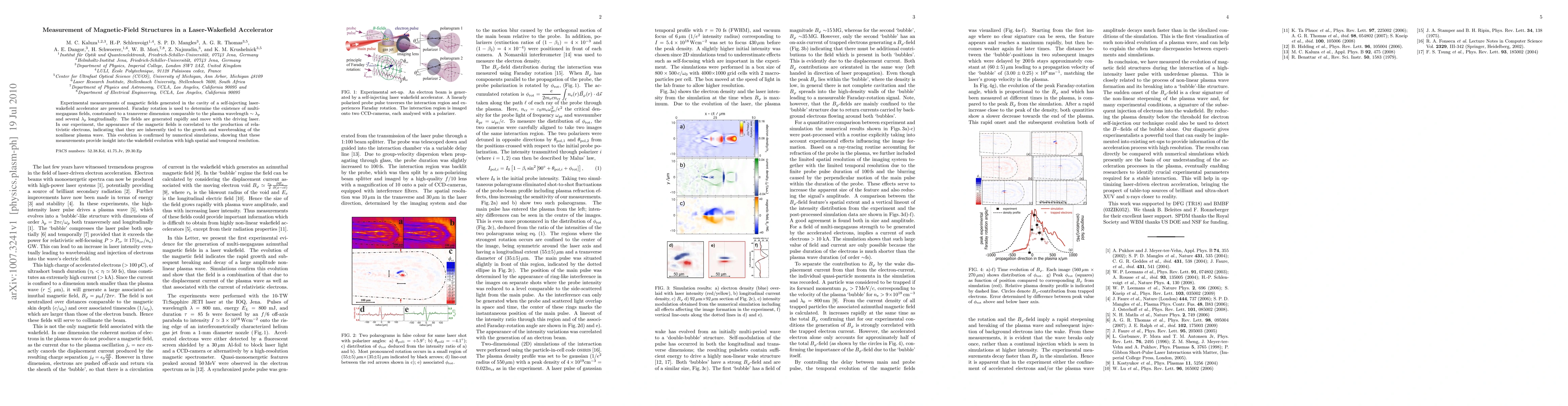 Experimental measurements of magnetic fields generated in the cavity of a self-injecting laser-wakefield accelerator are presented. Faraday rotation is used to determine the existence of multi-megagauss fields, constrained to a transverse dimension comparable to the plasma wavelength and several plasma wavelengths longitudinally. The fields are generated rapidly and move with the driving laser. In our experiment, the appearance of the magnetic fields is correlated to the production of relativistic electrons, indicating that they are inherently tied to the growth and wavebreaking of the nonlinear plasma wave. This evolution is confirmed by numerical simulations, showing that these measurements provide insight into the wakefield evolution with high spatial and temporal resolution.