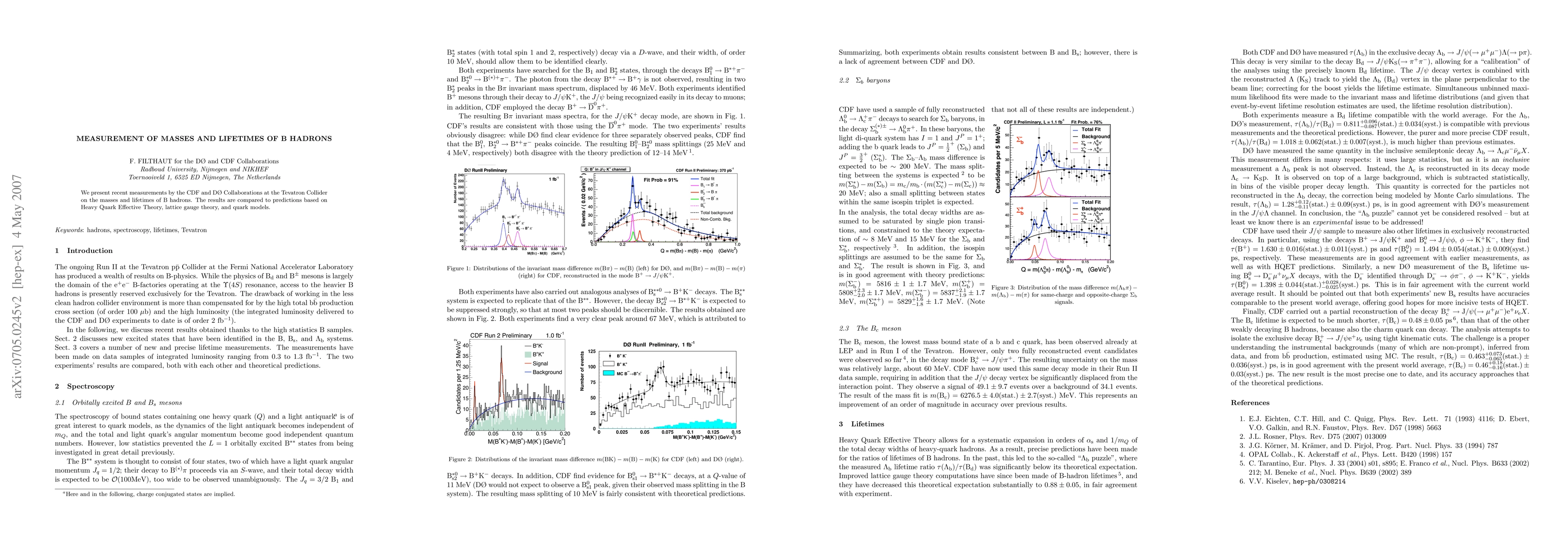 This paper reports new measurements of B hadron masses and lifetimes from the CDF and D0 Collaborations at the Tevatron Collider, comparing these findings to theoretical predictions from Heavy Quark Effective Theory, lattice gauge theory, and quark models. The results provide insights into the behavior of B hadrons and test theoretical frameworks.