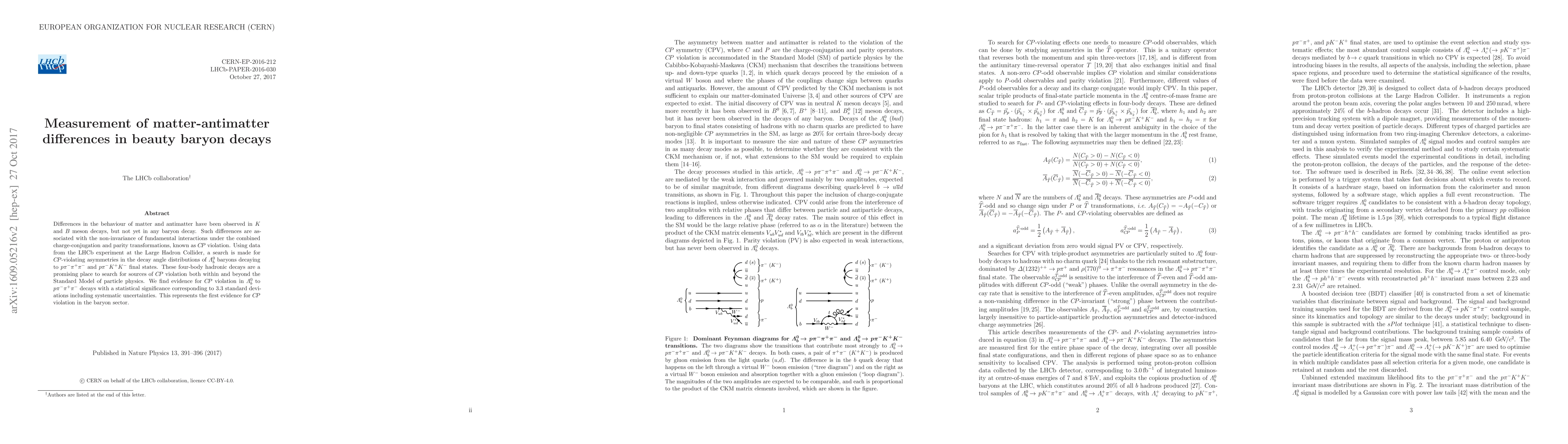 Researchers found evidence of C-P violation in baryon decays for the first time, with a statistical significance of 3.3 standard deviations, using LHCb experiment data.