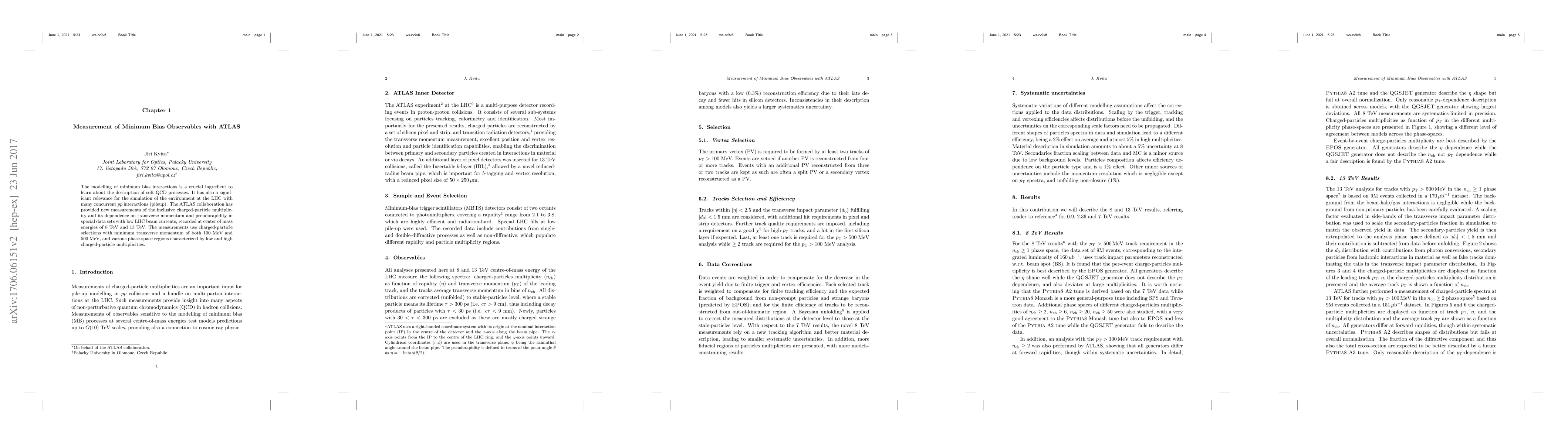 The ATLAS collaboration reports new measurements of minimum bias interactions, focusing on inclusive charged-particle multiplicity and its dependence on transverse momentum and pseudorapidity, at 8 TeV and 13 TeV LHC energies, aiding in the understanding of soft QCD processes and pileup simulation.