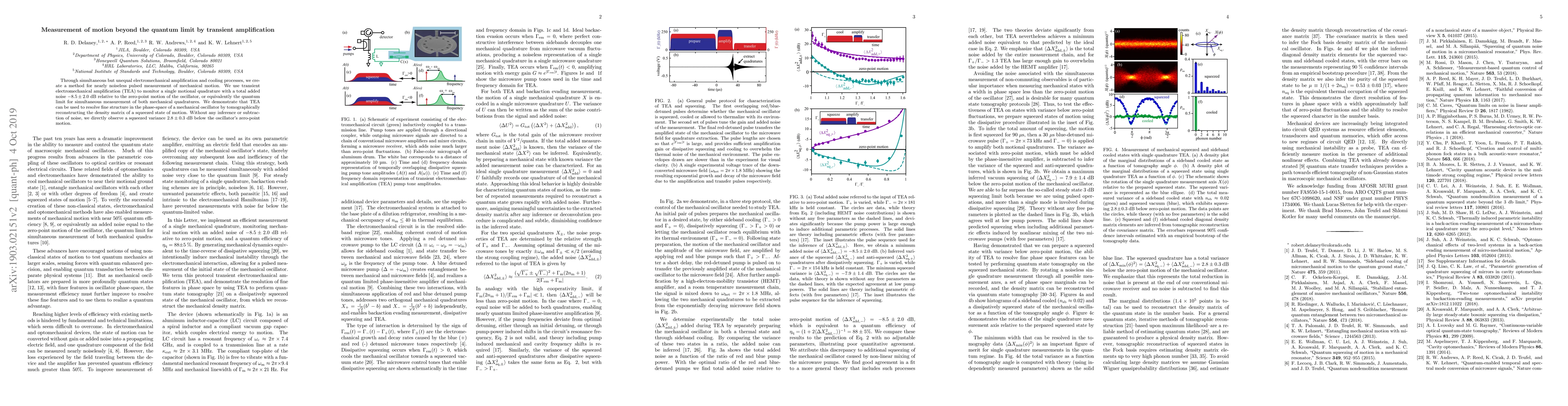 This paper presents a method for nearly noiseless measurement of mechanical motion beyond the quantum limit using transient electromechanical amplification, achieving a noise level $-8.5\pm2.0$ dB below the quantum limit and directly observing squeezed variance $2.8\pm 0.3$ dB below zero-point motion.