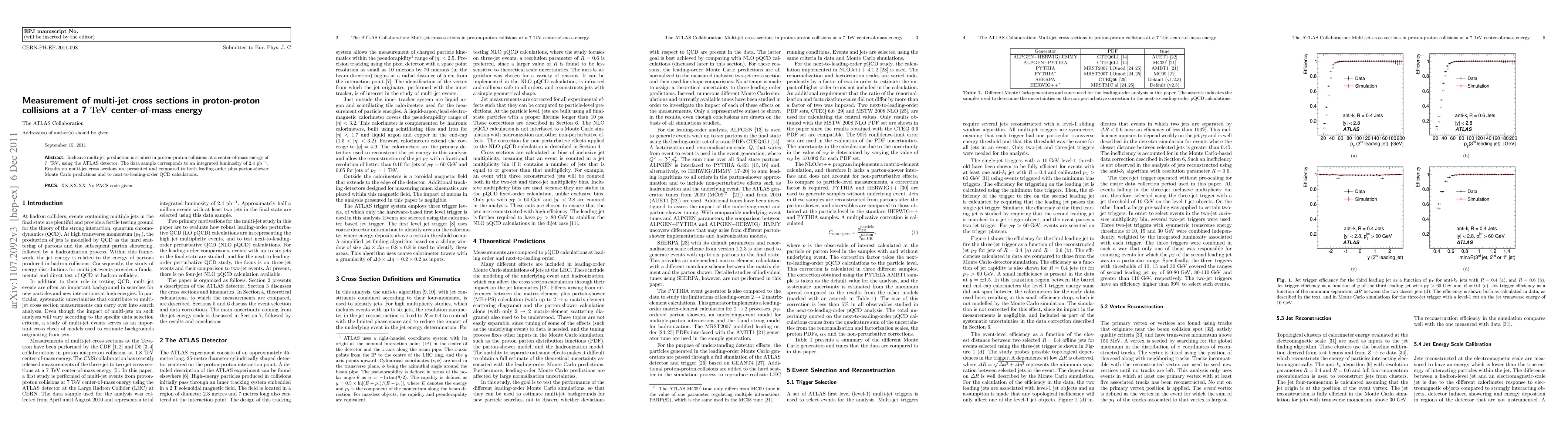 This study measures multi-jet cross sections in proton-proton collisions at 7 TeV using the ATLAS detector, analyzing data with an integrated luminosity of 2.4 pb^-1. Results are compared to both leading-order plus parton-shower Monte Carlo predictions and next-to-leading-order QCD calculations.