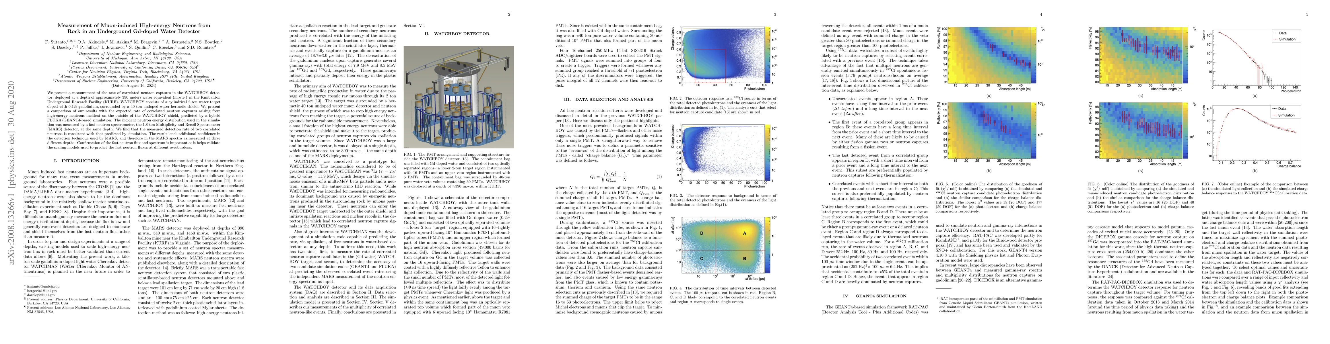 This study measures the rate of muon-induced high-energy neutrons in an underground Gd-doped water detector, finding consistency between observed and simulated correlated neutron capture rates. The results validate the detection technique and scaling models used to predict neutron fluxes at various depths.