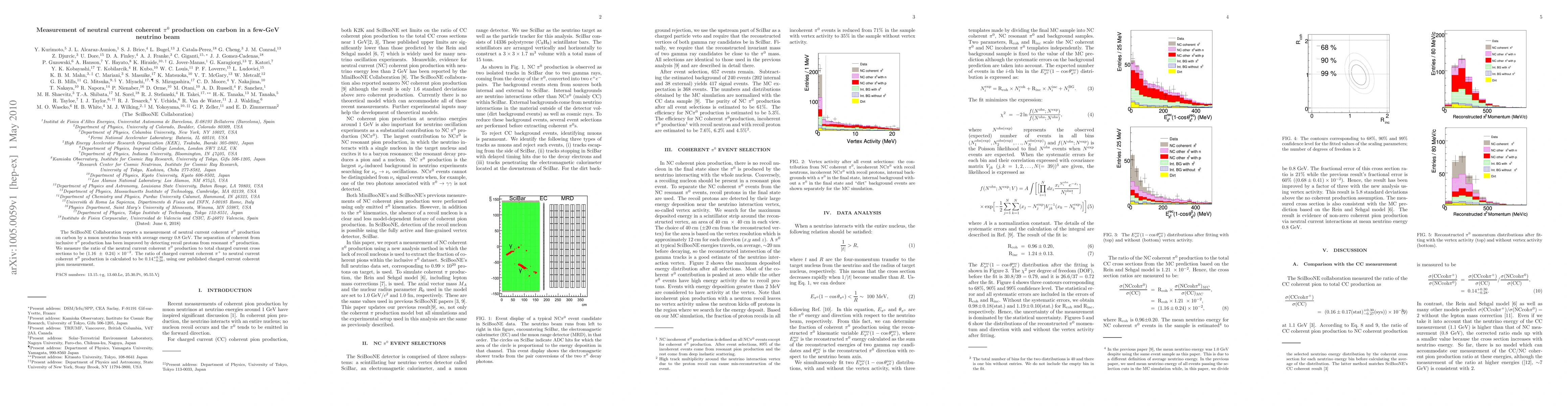 The SciBooNE Collaboration measures neutral current coherent neutral pion production on carbon using a 0.8 GeV muon neutrino beam, distinguishing it from inclusive production via recoil proton detection. The ratio of neutral current coherent neutral pion to total charged current cross sections is found to be (1.16 ± 0.24) x 10^-2.