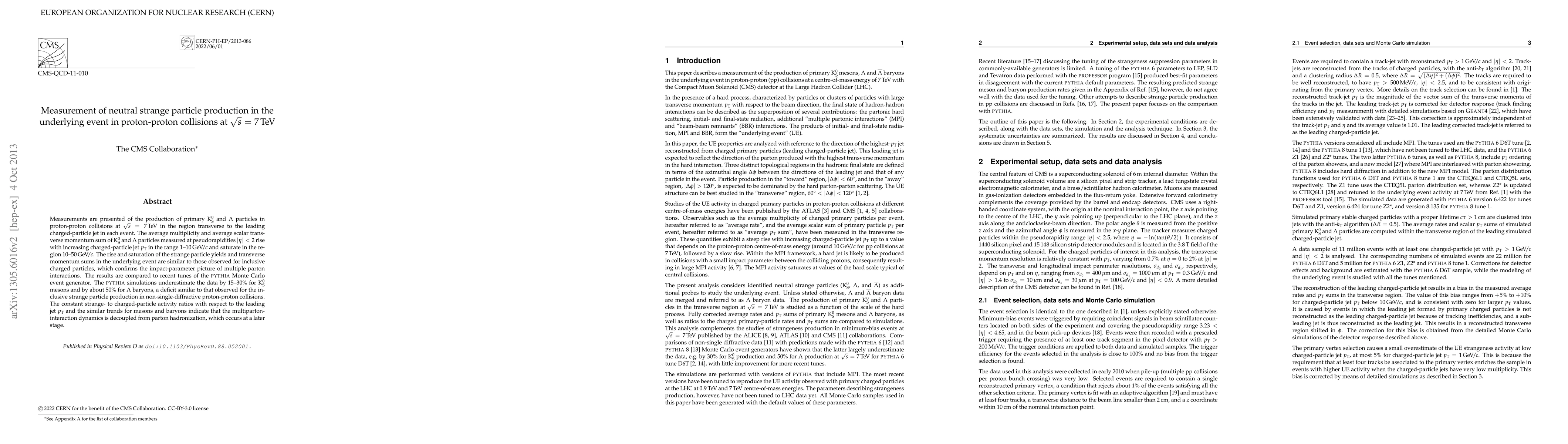 This paper measures the production of K(S)0 and Lambda particles in proton-proton collisions at 7 TeV, showing that the yields and transverse momentum sums rise and saturate with increasing jet energy, mirroring inclusive charged particles. The PYTHIA simulations significantly underestimate the observed data, indicating a decoupling of multiparton-interaction dynamics from parton hadronization.