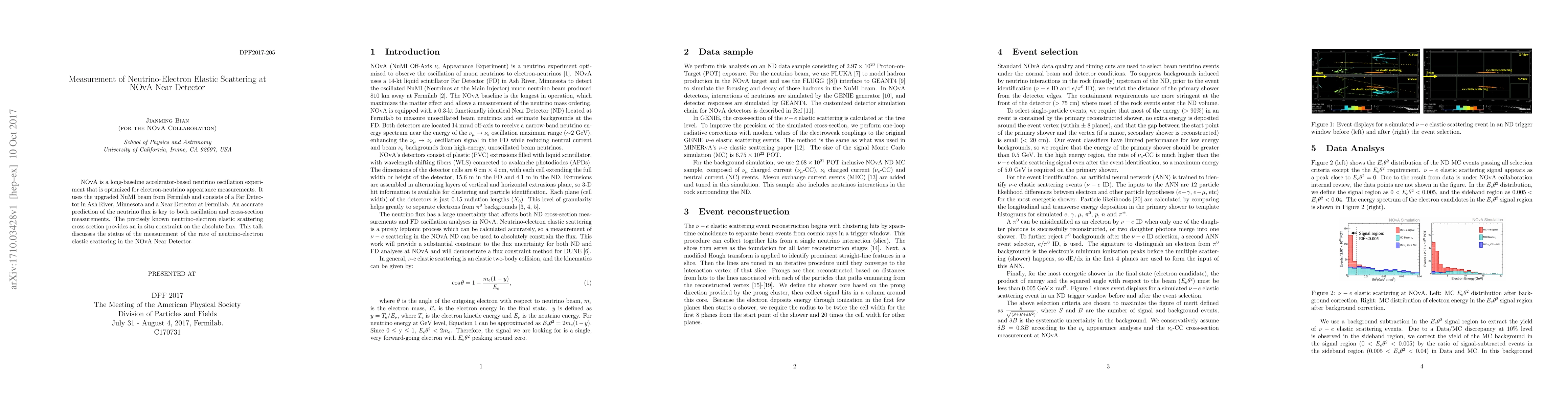 The NOvA experiment measures neutrino-electron elastic scattering to provide an in situ constraint on neutrino flux, crucial for oscillation and cross-section measurements. The current status of this measurement in the NOvA Near Detector is being reported.