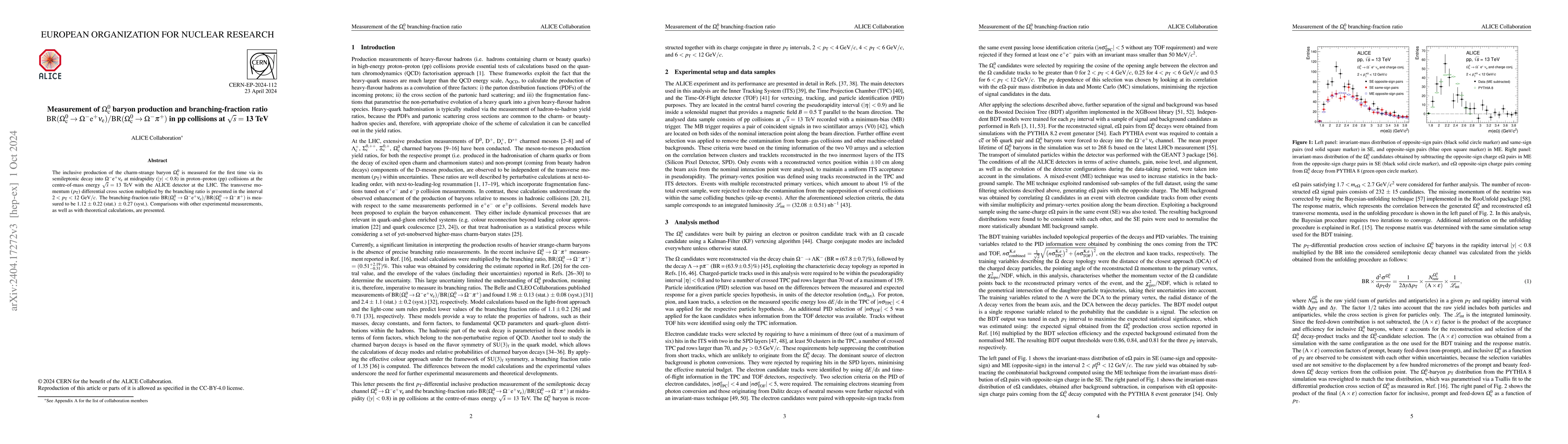 This study measures the first inclusive production of the $\Omega^{0}_{\rm c}$ baryon via its semileptonic decay in pp collisions at $\sqrt{s}=13$ TeV, determining the branching-fraction ratio ${\rm BR}(\Omega^0_{\rm c} \rightarrow \Omega^{-}{\rm e}^{+}\nu_{\rm e})/ {\rm BR}(\Omega^0_{\rm c} \rightarrow \Omega^{-}{\pi}^{+})$ to be 1.12 $\pm$ 0.22 (stat.) $\pm$ 0.27 (syst.). Results are compared with experimental data and theoretical predictions.