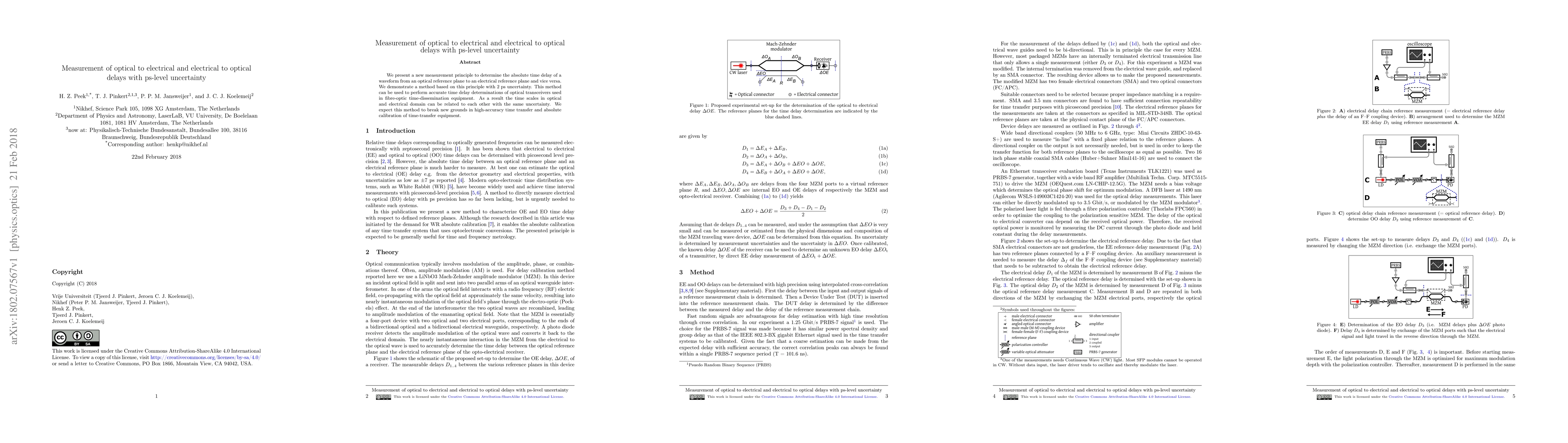 We present a new measurement principle to determine the absolute time delay of a waveform from an optical reference plane to an electrical reference plane and vice versa. We demonstrate a method based on this principle with 2 ps uncertainty. This method can be used to perform accurate time delay determinations of optical transceivers used in fibre-optic time-dissemination equipment. As a result the time scales in optical and electrical domain can be related to each other with the same uncertainty. We expect this method to break new grounds in high-accuracy time transfer and absolute calibration of time-transfer equipment.