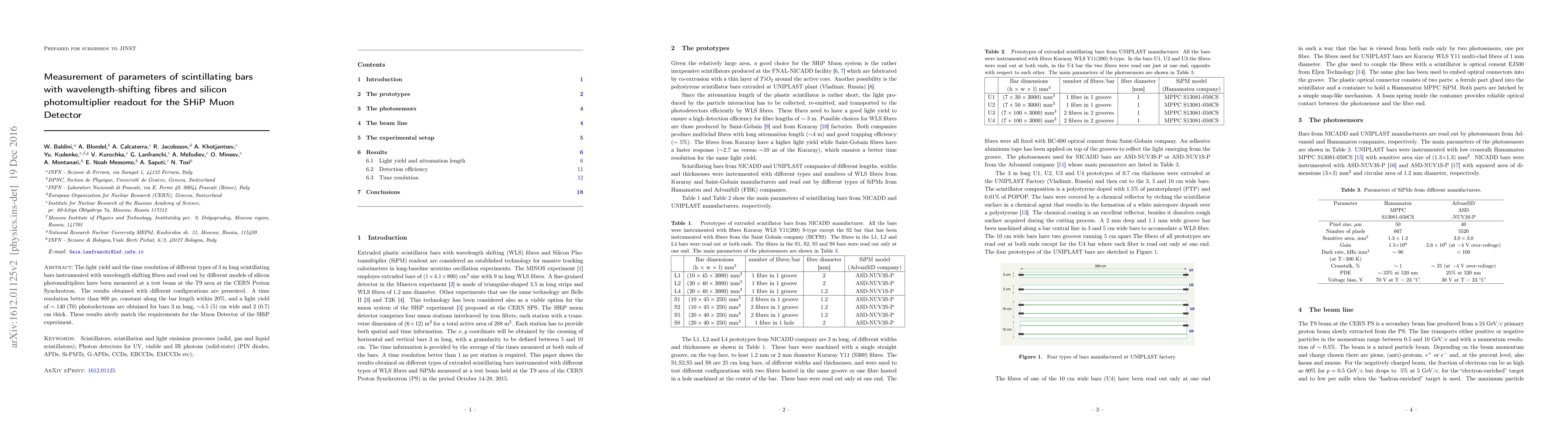 This study measures scintillating bars with wavelength-shifting fibres and silicon photomultiplier readout, achieving a time resolution of 800 ps and light yield of ~140 photoelectrons for the SHiP Muon Detector.