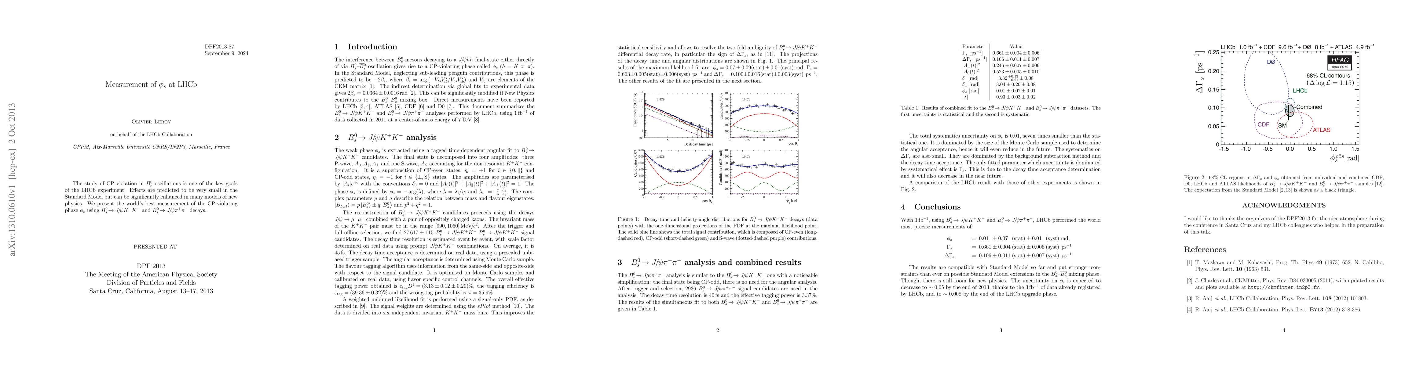 The LHCb experiment reports the most precise measurement of the CP-violating phase $\phi_s$ in $B_s^0$ meson oscillations, using decays to $J/\psi KK$ and $J/\psi\pi\pi$ final states, aiming to detect potential new physics beyond the Standard Model.