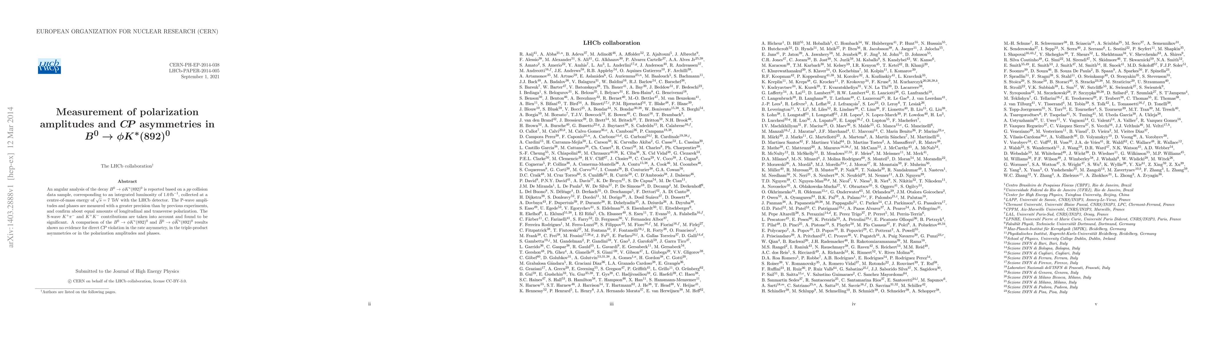 An angular analysis of the decay $B^0 \to \phi K^*(892)^0$ is reported based on a $pp$ collision data sample, corresponding to an integrated luminosity of 1.0 fb$^{-1}$, collected at a centre-of-mass energy of $\sqrt{s} = 7$ TeV with the LHCb detector. The P-wave amplitudes and phases are measured with a greater precision than by previous experiments, and confirm about equal amounts of longitudinal and transverse polarization. The S-wave $K^+ \pi^-$ and $K^+K^-$ contributions are taken into account and found to be significant. A comparison of the $B^0 \to \phi K^*(892)^0$ and $\bar{B}^0 \to \phi \bar{K}^*(892)^0$ results shows no evidence for direct CP violation in the rate asymmetry, in the triple-product asymmetries or in the polarization amplitudes and phases.