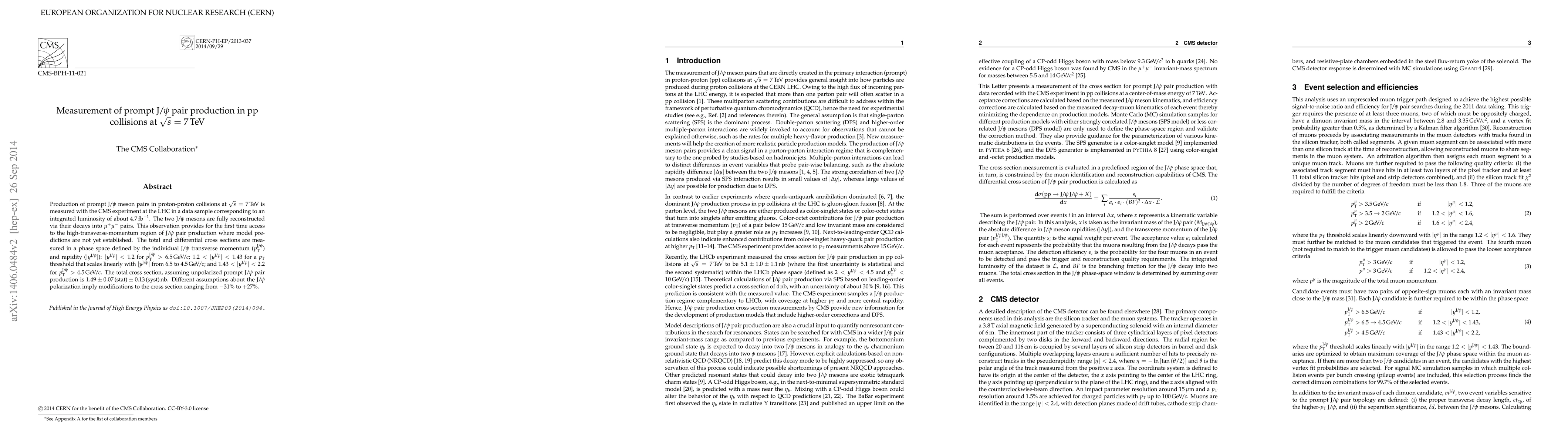 This study measures prompt J/psi pair production in proton-proton collisions at 7 TeV using the CMS experiment at the LHC, providing new data on high-transverse-momentum regions. The total cross section is determined to be 1.49 ± 0.07 (stat.) ± 0.13 (syst.) nb.
