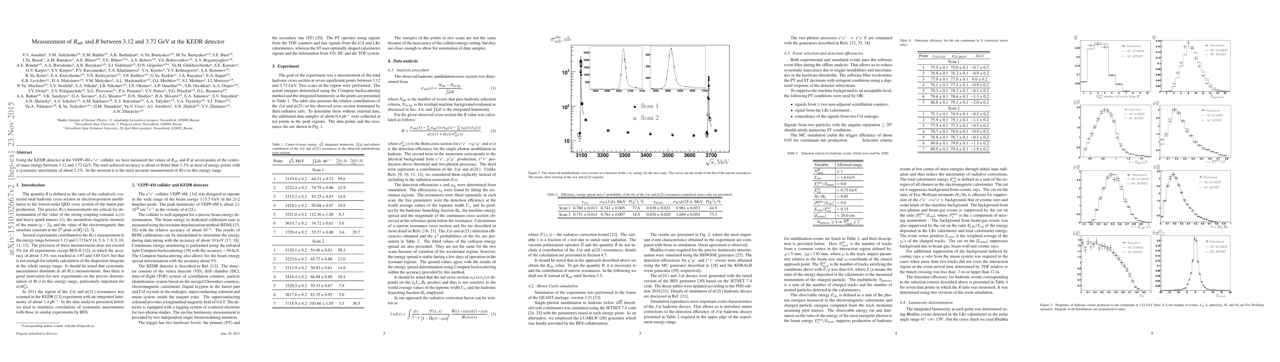 Using the KEDR detector at the VEPP-4M $e^+e^-$ collider, we have measured the values of $R_{\text{uds}}$ and $R$ at seven points of the center-of-mass energy between 3.12 and 3.72 GeV. The total achieved accuracy is about or better than $3.3\%$ at most of energy points with a systematic uncertainty of about $2.1\%$. At the moment it is the most accurate measurement of $R(s)$ in this energy range.