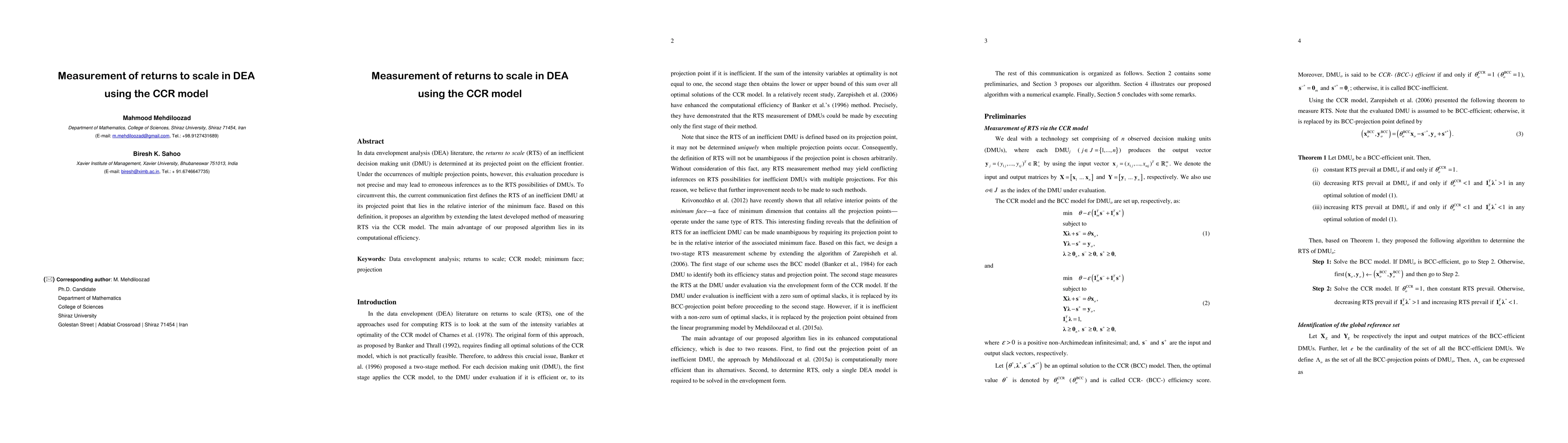 This paper proposes a new method to measure returns to scale (RTS) in data envelopment analysis (DEA) using the CCR model, particularly for inefficient decision making units (DMUs) with multiple projection points. The method defines RTS at the projected point in the relative interior of the minimum face, enhancing computational efficiency over existing approaches.