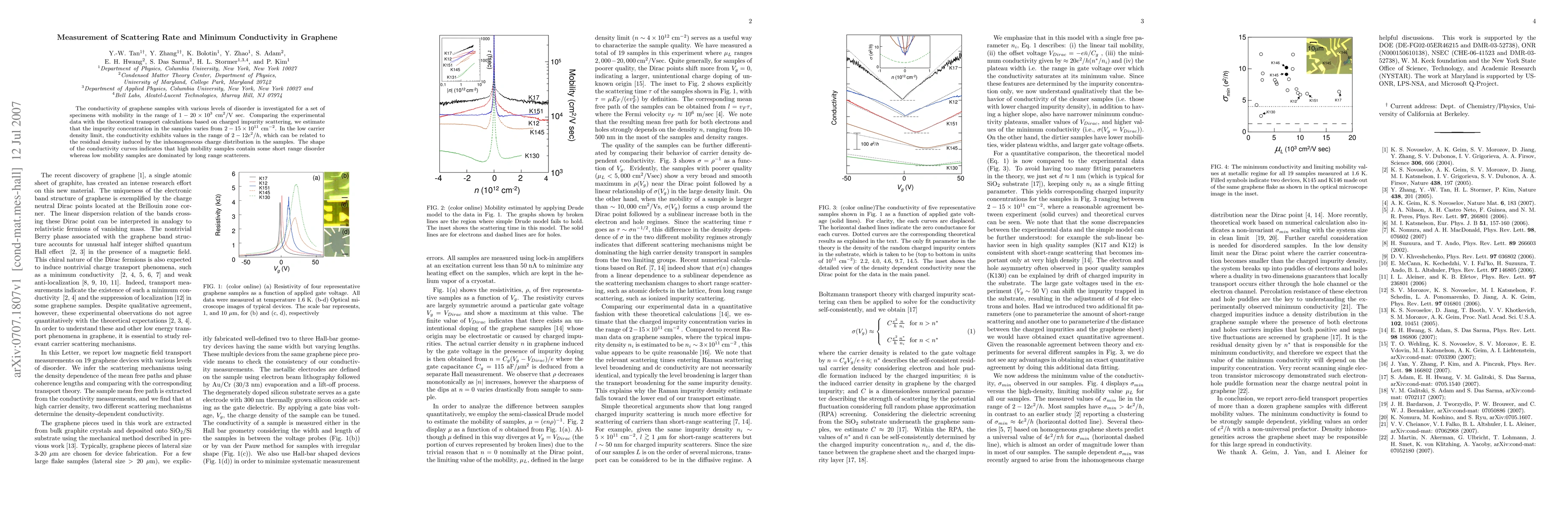 The conductivity of graphene samples with various levels of disorder is investigated for a set of specimens with mobility in the range of $1-20\times10^3$ cm$^2$/V sec. Comparing the experimental data with the theoretical transport calculations based on charged impurity scattering, we estimate that the impurity concentration in the samples varies from $2-15\times 10^{11}$ cm$^{-2}$. In the low carrier density limit, the conductivity exhibits values in the range of $2-12e^2/h$, which can be related to the residual density induced by the inhomogeneous charge distribution in the samples. The shape of the conductivity curves indicates that high mobility samples contain some short range disorder whereas low mobility samples are dominated by long range scatterers.