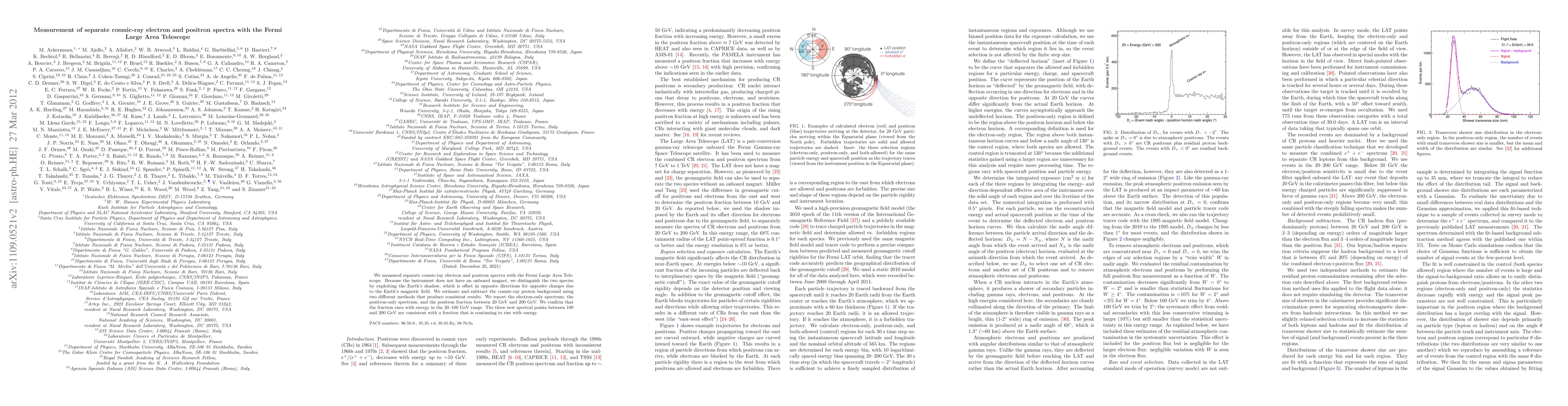 The Fermi Large Area Telescope measured separate cosmic-ray electron and positron spectra by using the Earth's shadow, revealing the positron fraction's rise from 20 to 200 GeV. The study confirms the positron fraction's increase in the 20-100 GeV range and suggests a continuing rise up to 200 GeV.