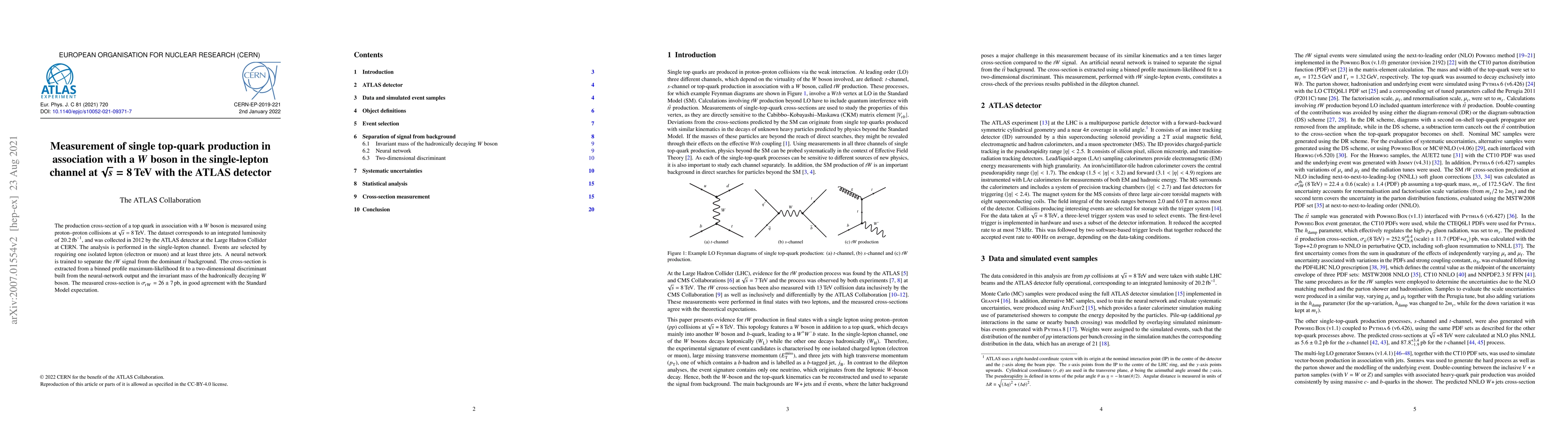 This paper measures the production cross-section of a top quark in association with a $W$ boson using the ATLAS detector at the LHC, analyzing data from proton-proton collisions at $\sqrt{s} = 8$ TeV. The measured cross-section is $\sigma_{tW} = 26 \pm 7$ pb, consistent with Standard Model predictions.