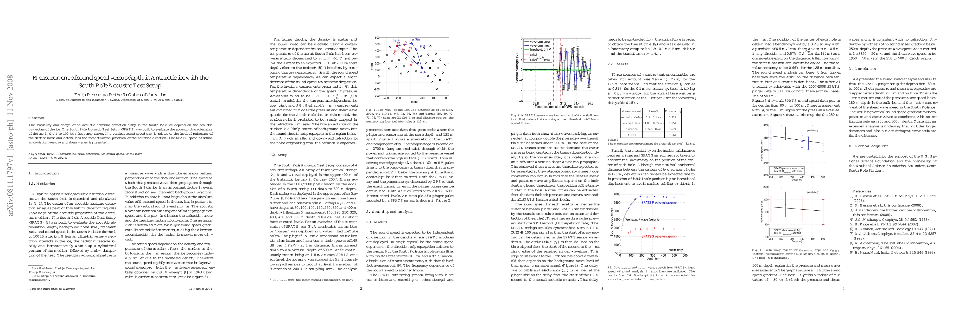 The South Pole Acoustic Test Setup (SPATS) measures sound speed in Antarctic ice to assess acoustic properties crucial for designing an acoustic neutrino detection array. The study presents the vertical sound speed profile for pressure and shear waves, essential for understanding noise refraction and neutrino direction reconstruction.