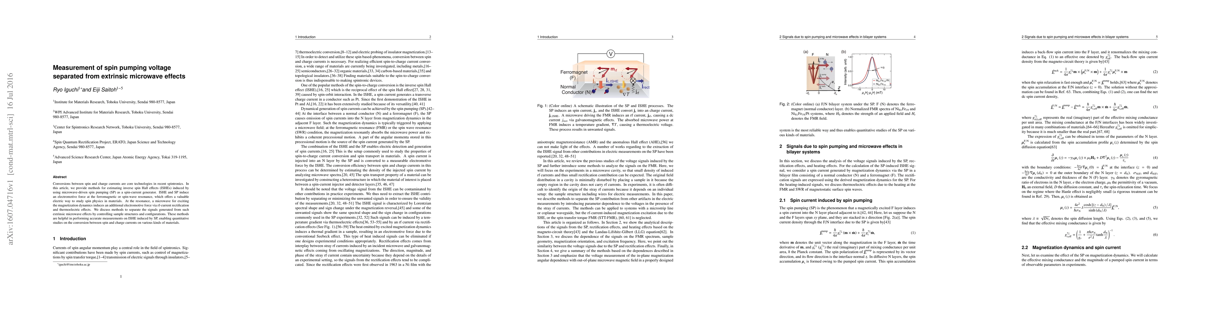 This paper presents techniques to accurately measure the inverse spin Hall effect (ISHE) induced by microwave-driven spin pumping, separating it from extrinsic microwave effects. It discusses methods to isolate the ISHE signal by controlling sample structures and configurations, enabling precise studies of spin-charge current conversions in materials.