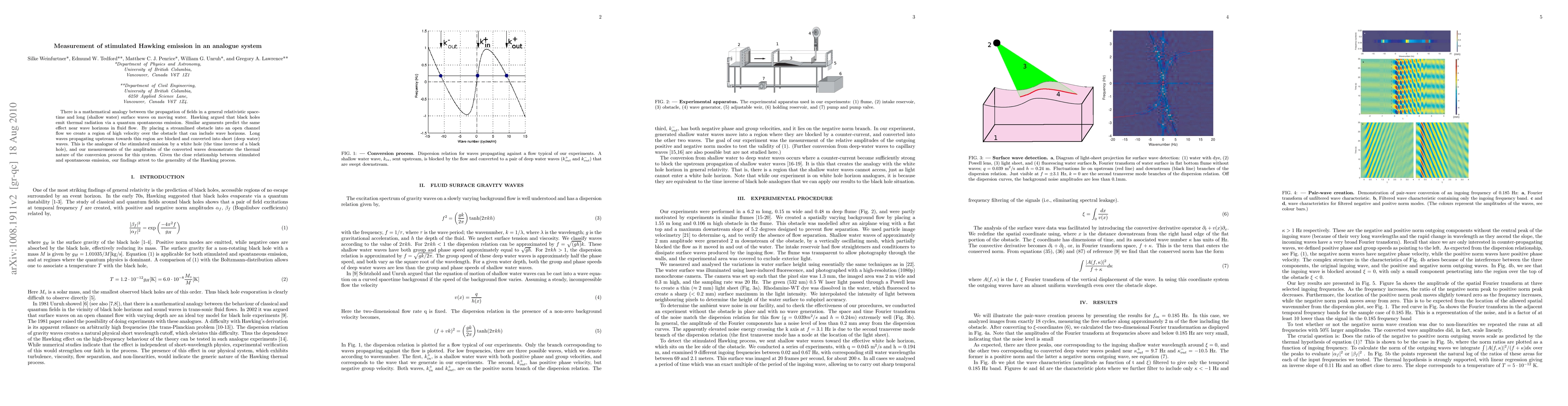 This paper investigates the stimulated Hawking emission using an analogue system of fluid flow, demonstrating the thermal nature of wave conversion near wave horizons created by a streamlined obstacle. The findings support the mathematical analogy between black hole radiation and the analogous effect in fluid dynamics, highlighting the general applicability of Hawking's emission theory.