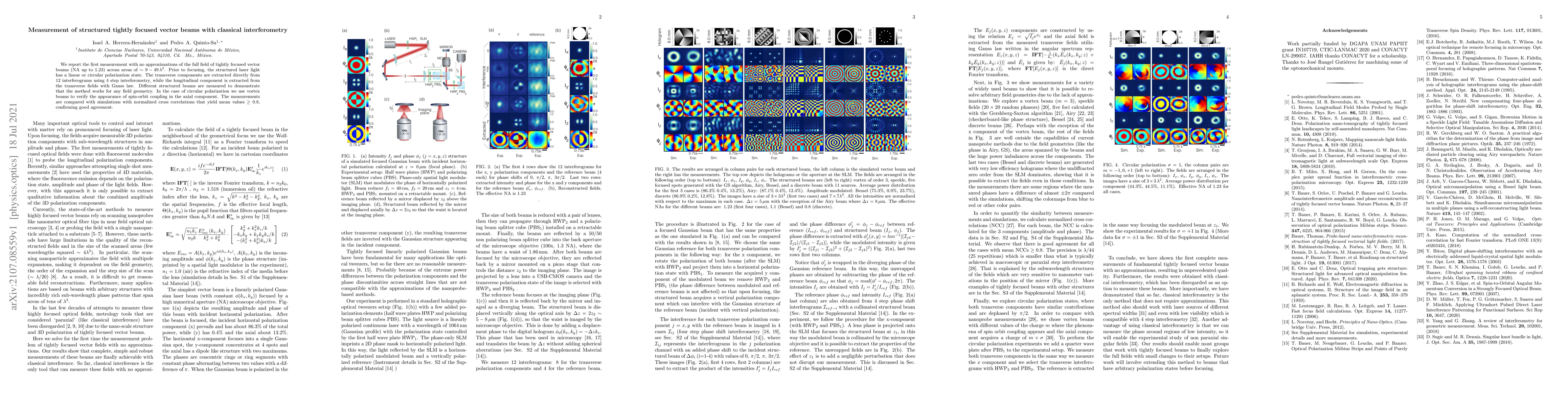 This paper presents a novel method for measuring the full field of tightly focused vector beams using classical interferometry, achieving precise measurements without approximations. The technique employs 4-step interferometry to extract transverse components and Gauss law for the longitudinal component, validated through comparisons with simulations showing high correlation.