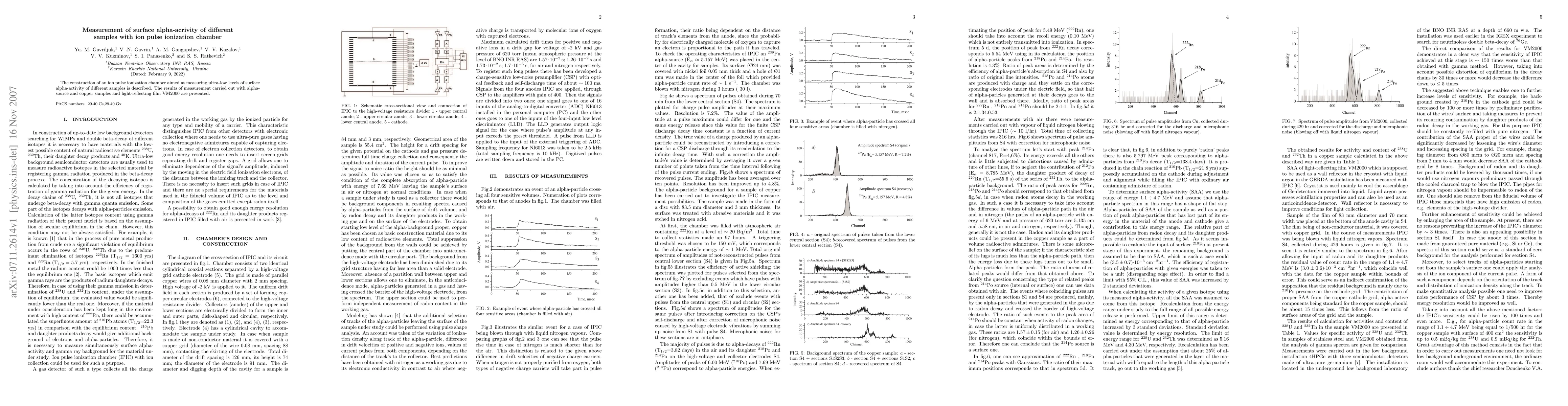 The research used an ion pulse ionization chamber to measure surface alpha-activity of different samples.