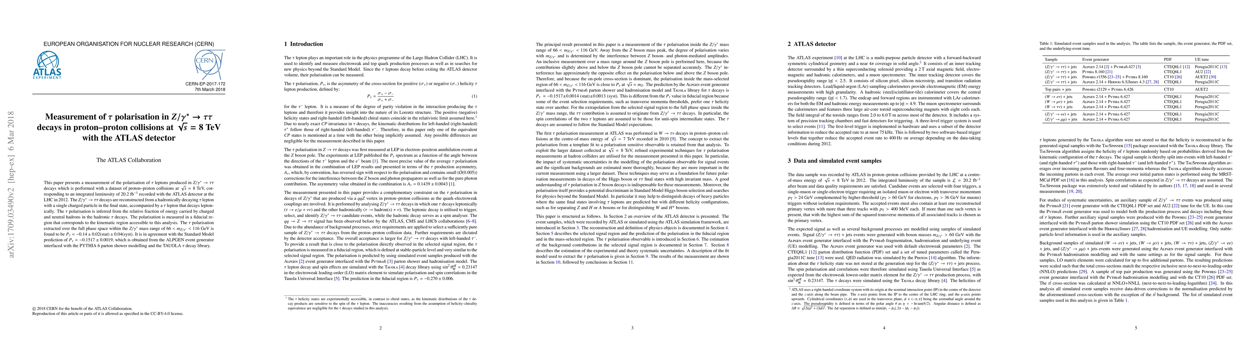 This paper presents a measurement of the polarisation of $\tau$ leptons produced in $Z/\gamma^{*}\rightarrow\tau\tau$ decays which is performed with a dataset of proton-proton collisions at $\sqrt{s}=8$ TeV, corresponding to an integrated luminosity of 20.2 fb$^{-1}$ recorded with the ATLAS detector at the LHC in 2012. The $Z/\gamma^{*}\rightarrow\tau\tau$ decays are reconstructed from a hadronically decaying $\tau$ lepton with a single charged particle in the final state, accompanied by a $\tau$ lepton that decays leptonically. The $\tau$ polarisation is inferred from the relative fraction of energy carried by charged and neutral hadrons in the hadronic $\tau$ decays. The polarisation is measured in a fiducial region that corresponds to the kinematic region accessible to this analysis. The $\tau$ polarisation extracted over the full phase space within the $Z/\gamma^{*}$ mass range of 66$ < m_{Z/\gamma^{*}} < $ 116 GeV is found to be $P_{\tau} =-0.14 \pm 0.02 (\text{stat}) \pm 0.04 (\text{syst})$. It is in agreement with the Standard Model prediction of $P_{\tau} =-0.1517 \pm 0.0019$, which is obtained from the ALPGEN event generator interfaced with the PYTHIA 6 parton shower modelling and the TAUOLA $\tau$ decay library.