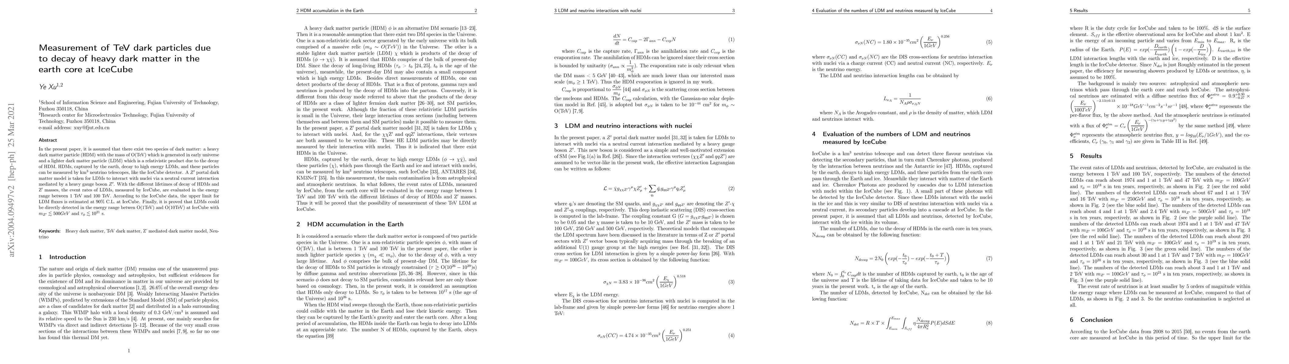 This paper estimates a 90% confidence limit for TeV dark matter particles detected by IceCube, finding that LDMs could be directly detected in the 1-10 TeV range with specific Z' boson mass and lifetime constraints.