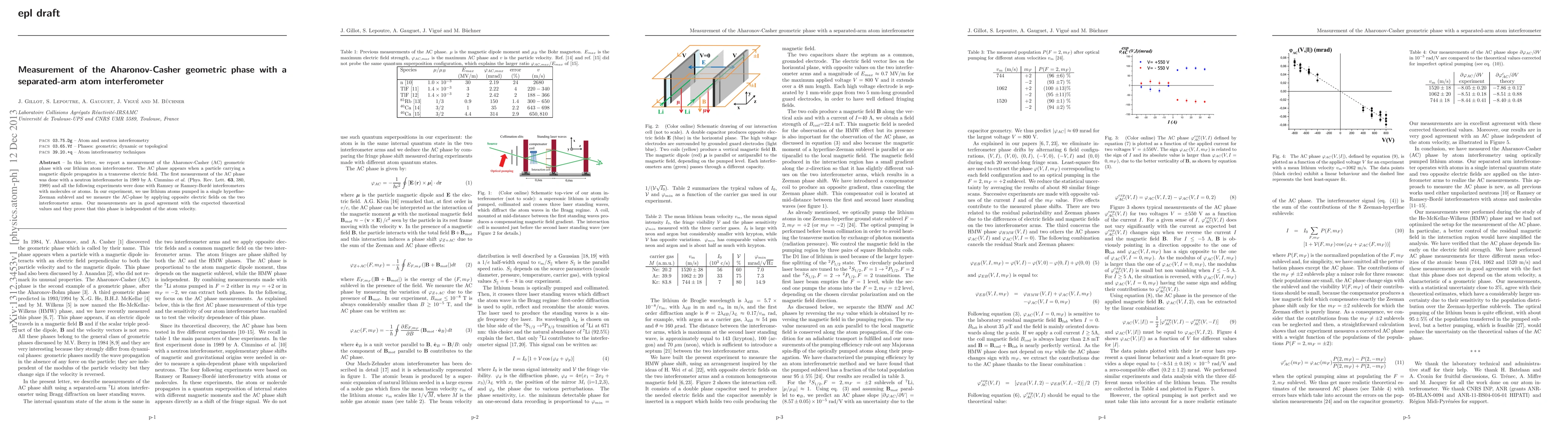 In this letter, we report a measurement of the Aharonov-Casher (AC) geometric phase with our lithium atom interferometer. The AC phase appears when a particle carrying a magnetic dipole propagates in a transverse electric field. The first measurement of the AC phase was done with a neutron interferometer in 1989 by A. Cimmino \textit{et al.} (Phys. Rev. Lett. \textbf{63}, 380, 1989) and all the following experiments were done with Ramsey or Ramsey-Bord\'e interferometers with molecules or atoms. In our experiment, we use lithium atoms pumped in a single hyperfine-Zeeman sublevel and we measure the AC-phase by applying opposite electric fields on the two interferometer arms. Our measurements are in good agreement with the expected theoretical values and they prove that this phase is independent of the atom velocity.
