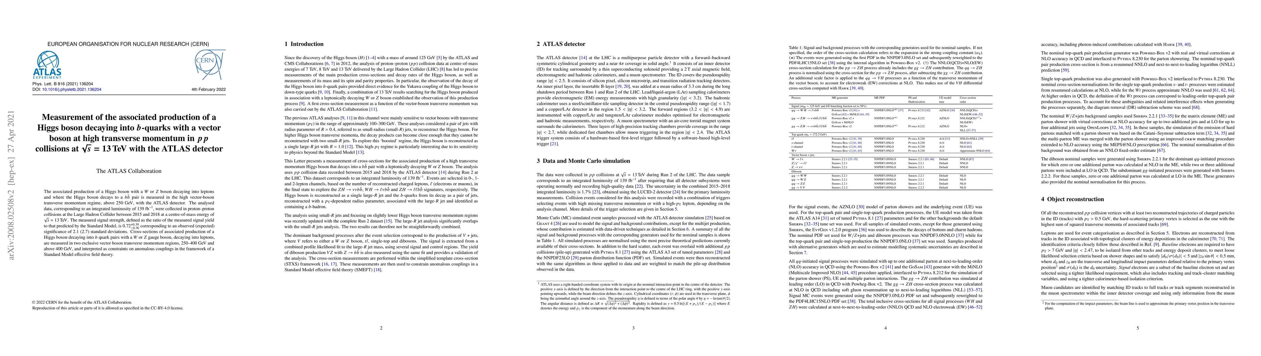 Scientists at ATLAS have measured the production of a Higgs boson decaying into $b$-quarks with a vector boson, finding a signal strength of 0.72 and constraints on anomalous couplings in the Standard Model.