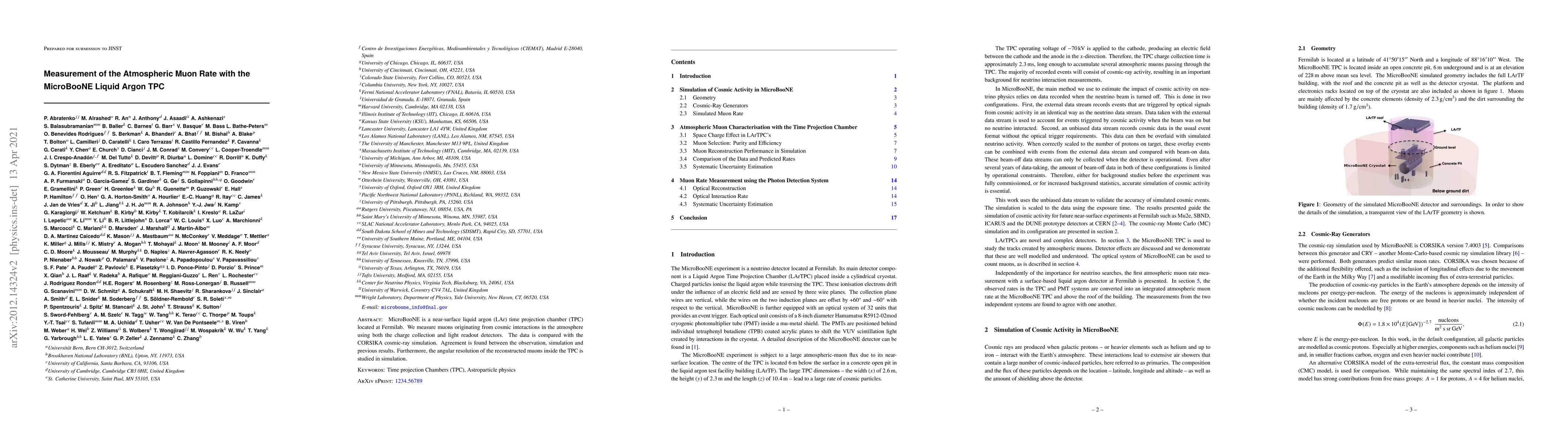 MicroBooNE, a liquid argon TPC at Fermilab, measures atmospheric muon rates from cosmic interactions, showing good agreement between observations and simulations. The study also evaluates the angular resolution of reconstructed muons within the TPC.
