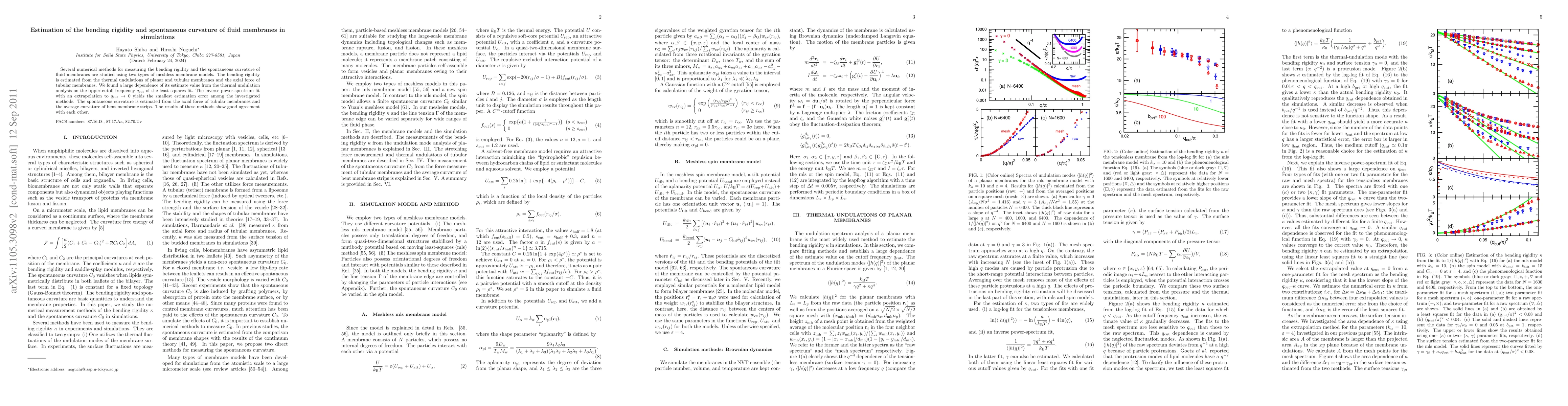 This paper investigates numerical methods for measuring the bending rigidity and spontaneous curvature of fluid membranes using meshless models. The bending rigidity is best estimated via inverse power-spectrum fitting, while spontaneous curvature estimates from axial force and average curvature show good agreement.