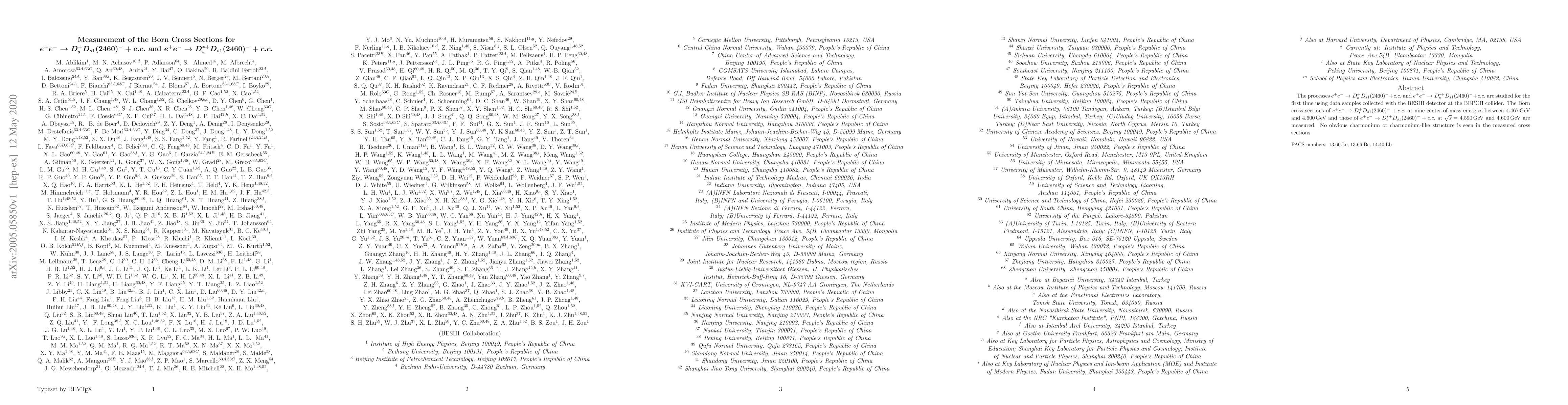 This study measures the Born cross sections for the first time for the processes $e^+e^-\to D_s^+ D_{s1}(2460)^- +c.c.$ and $e^+e^-\to D_s^{\ast +} D_{s1}(2460)^- +c.c.$ using data from the BESIII detector, finding no evidence of charmonium or charmonium-like structures in the results.
