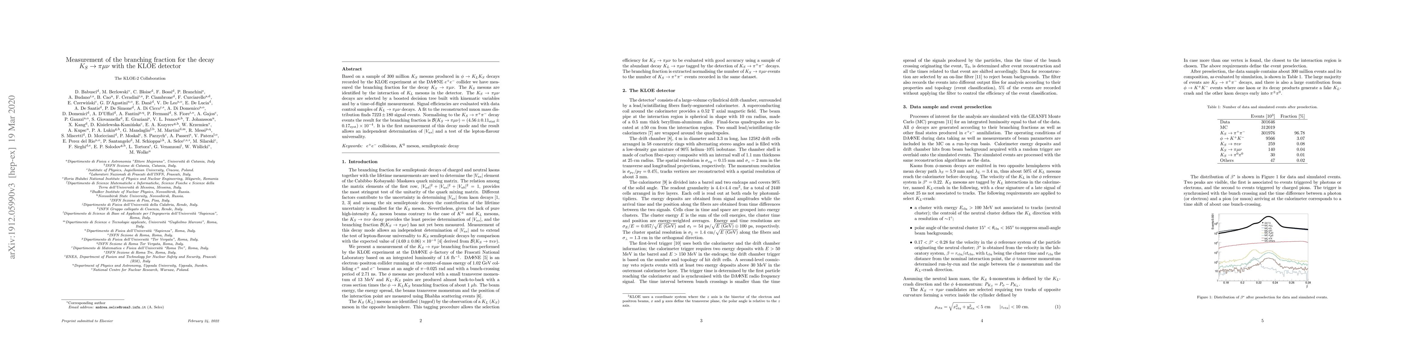 This paper reports the measurement of the branching fraction for the decay $K_S \to \pi \mu \nu$ using data from the KLOE detector at the DA$\Phi$NE collider, finding $\mathcal{B}(K_S \to \pi \mu \nu) = (4.56 \pm 0.11_{\rm stat} \pm 0.17_{\rm syst})\times10^{-4}$. The analysis employs a boosted decision tree and time-of-flight measurements to identify decay events.