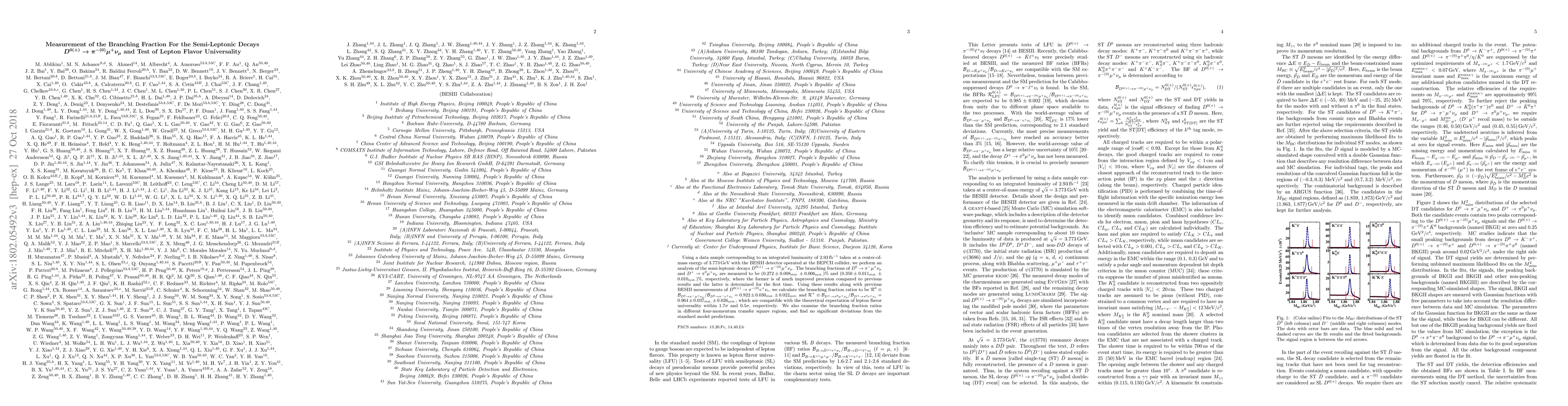 Using a data sample corresponding to an integrated luminosity of $2.93\,\rm fb^{-1}$ taken at a center-of-mass energy of 3.773\,GeV with the BESIII detector operated at the BEPCII collider, we perform an analysis of the semi-leptonic decays $D^{0(+)}\to \pi^{-(0)}\mu^+\nu_\mu$. The branching fractions of $D^0\to \pi^-\mu^+\nu_\mu$ and $D^+\to \pi^0\mu^+\nu_\mu$ are measured to be $(0.272 \pm 0.008_{\rm stat.} \pm 0.006_{\rm syst.})\%$ and $(0.350 \pm 0.011_{\rm stat.} \pm 0.010_{\rm syst.})\%$, respectively, where the former is of much improved precision compared to previous results and the latter is determined for the first time. Using these results along with previous BESIII measurements of $D^{0(+)}\to \pi^{-(0)}e^+\nu_e$, we calculate the branching fraction ratios to be ${\mathcal R}^0\equiv {\mathcal B}_{D^{0}\to \pi^{-}\mu^+\nu_\mu}/{\mathcal B}_{D^{0}\to \pi^{-}e^+\nu_e}=0.922\pm 0.030_{\rm stat.}\pm0.022_{\rm syst.}$ and ${\mathcal R}^+\equiv {\mathcal B}_{D^{+}\to \pi^{0}\mu^+\nu_\mu}/{\mathcal B}_{D^{+}\to \pi^{0}e^+\nu_e}=0.964\pm 0.037_{\rm stat.}\pm0.026_{\rm syst.}$, which are compatible with the theoretical expectation of lepton flavor universality within $1.7\sigma$ and $0.5\sigma$, respectively. We also examine the branching fraction ratios in different four-momentum transfer square regions, and find no significant deviations from the standard model predictions.