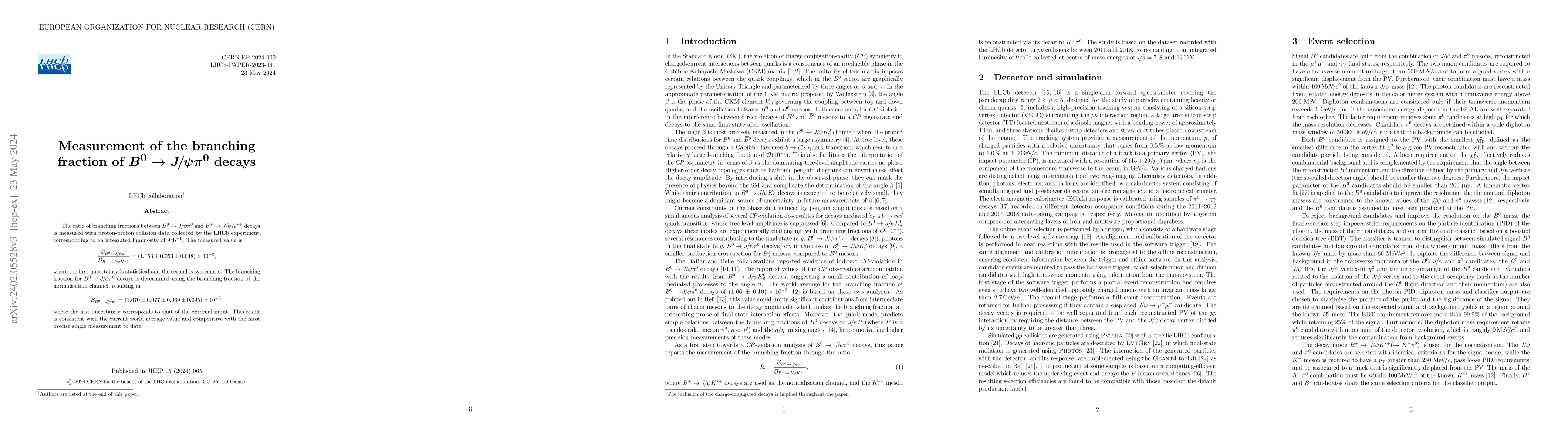 The LHCb experiment measures the ratio of branching fractions for $B^{0} \rightarrow J/\psi \pi^{0}$ and $B^{+} \rightarrow J/\psi K^{*+}$ decays, obtaining a value of $(1.153 \pm 0.053 \pm 0.048) \times 10^{-2}$, and determines the branching fraction for $B^{0} \rightarrow J/\psi \pi^{0}$ to be $(1.670 \pm 0.077 \pm 0.069 \pm 0.095) \times 10^{-5}$.