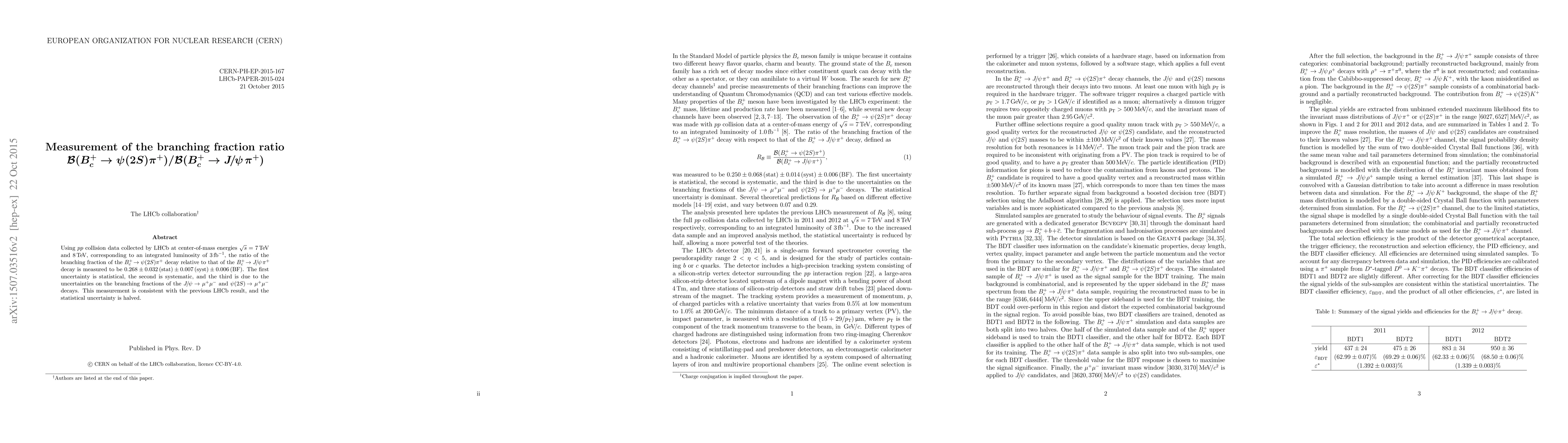 The LHCb experiment measures the branching fraction ratio $\mathcal{B}(B_c^+ \rightarrow \psi(2S)\pi^+)/\mathcal{B}(B_c^+ \rightarrow J/\psi \pi^+)$ to be 0.268 $\pm$ 0.032 (stat) $\pm$ 0.007 (syst) $\pm$ 0.006 (BF), consistent with previous LHCb results, and with halved statistical uncertainty.